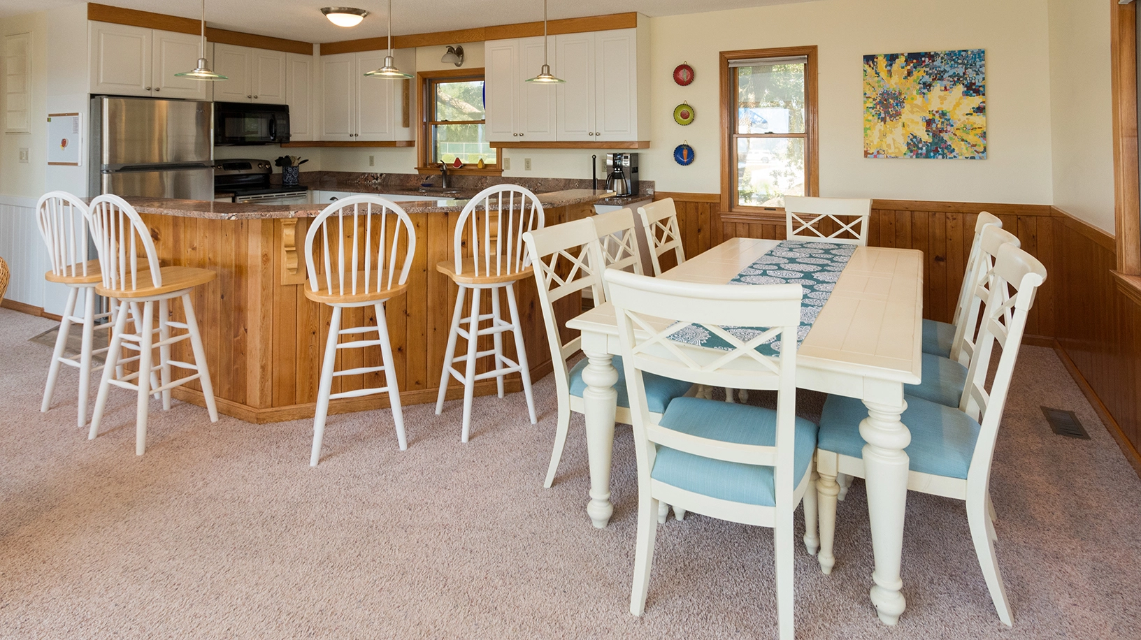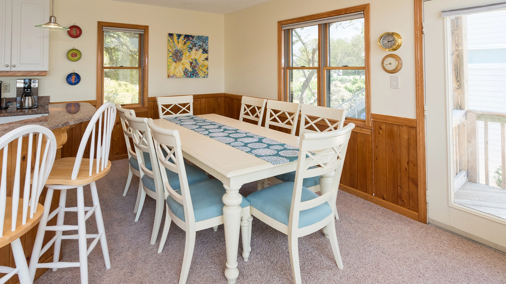 "Sandy Sunsets was nice. Back deck great! Well supplied kitchen. Owners should get rid of carpet on main floor. Put in laminate. Love Duck and Corolla."