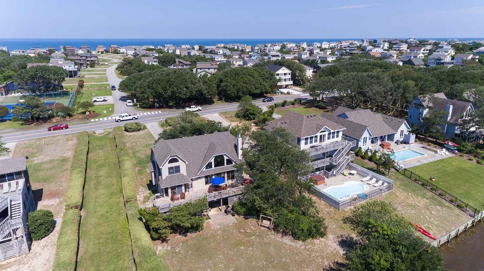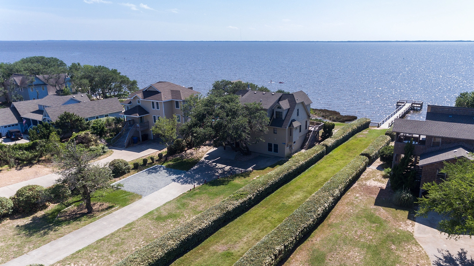 "Just the right size for my wife and me and my daughter's family of 5. Excellent location on the sound but only a 5 minute walk to the ocean. Clean and appears to be well taken care of."