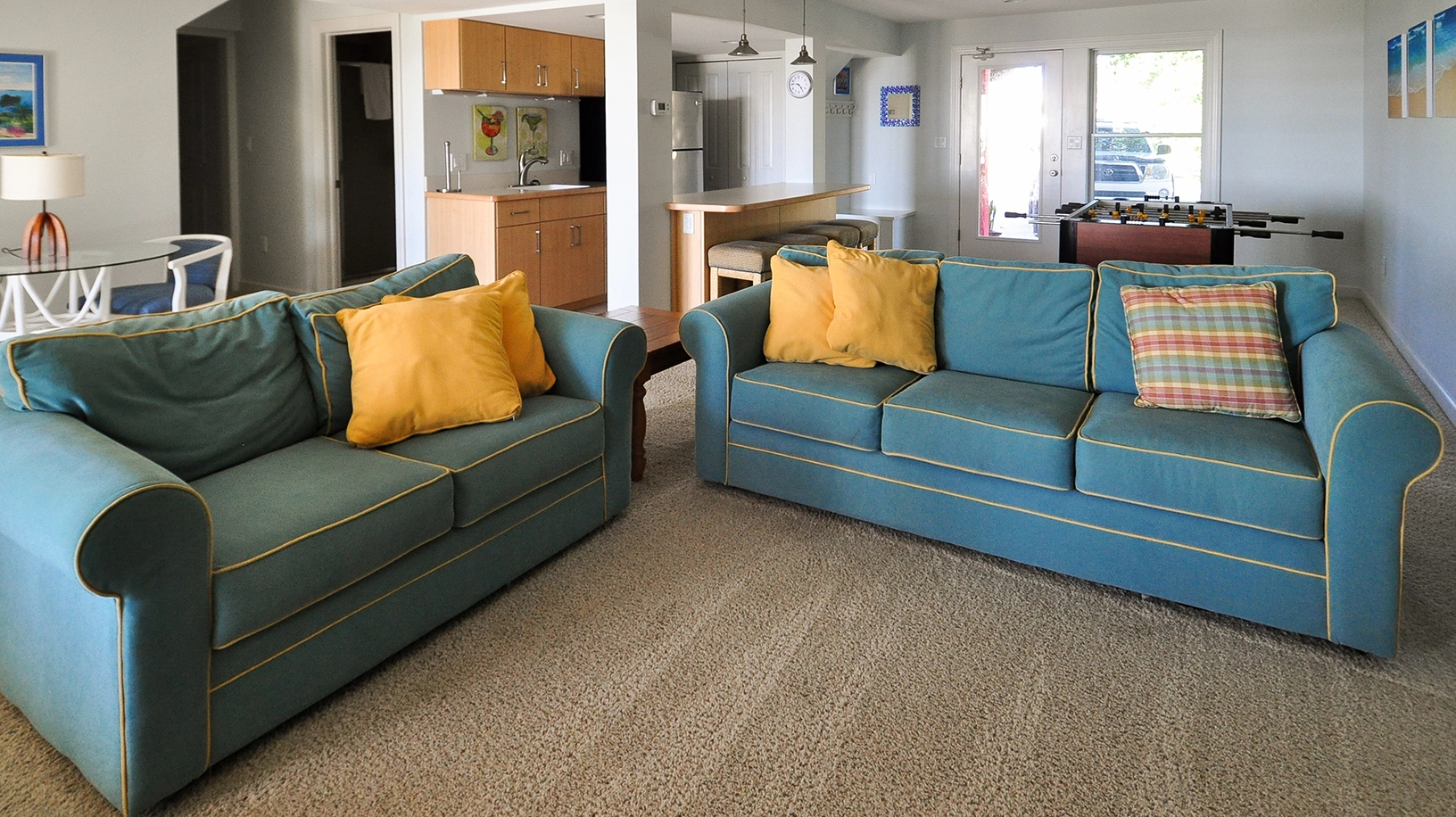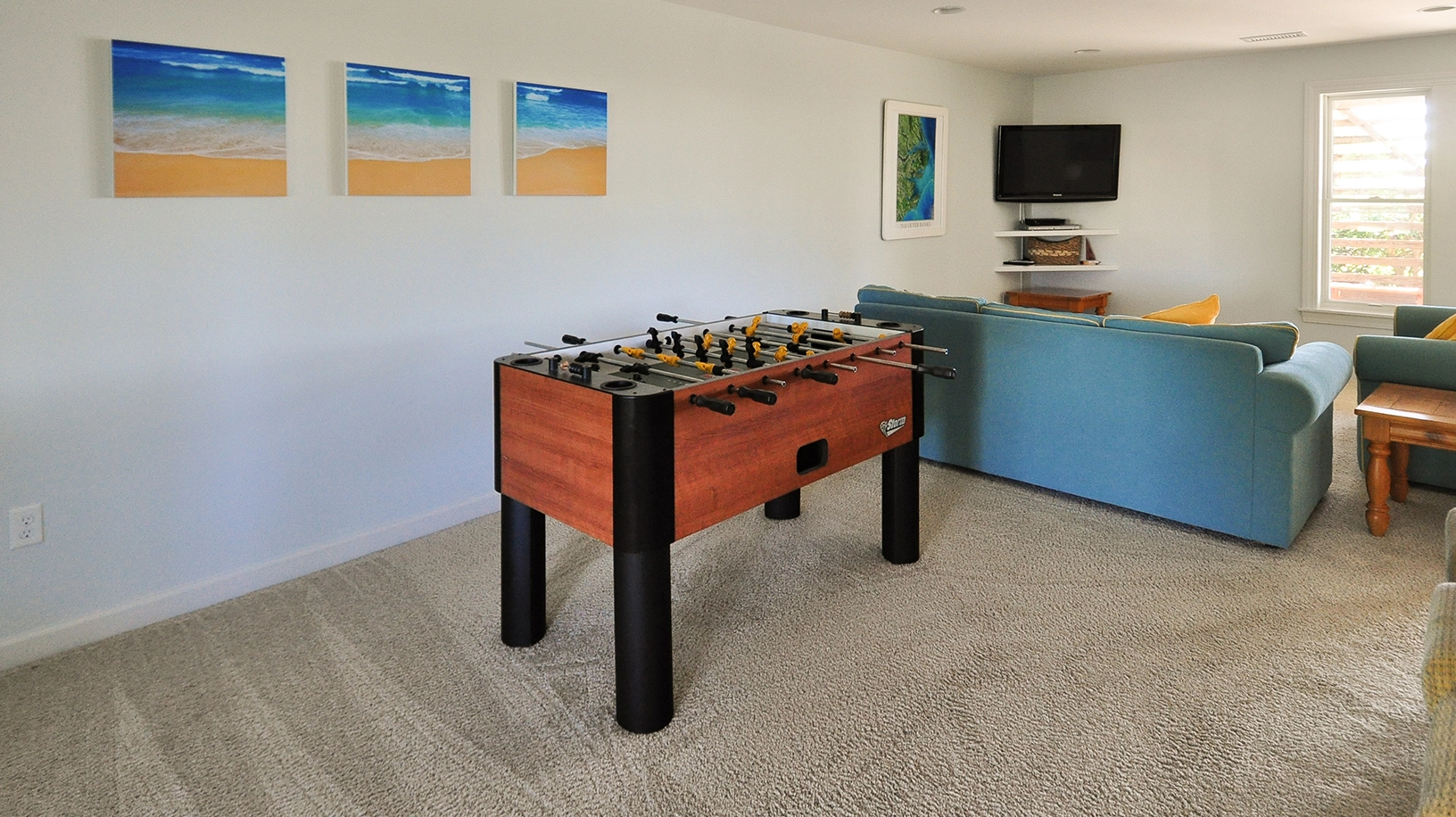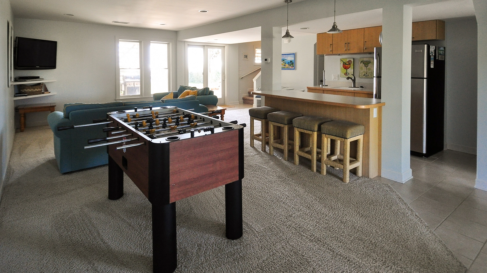 Rec room with wet bar and foosball.