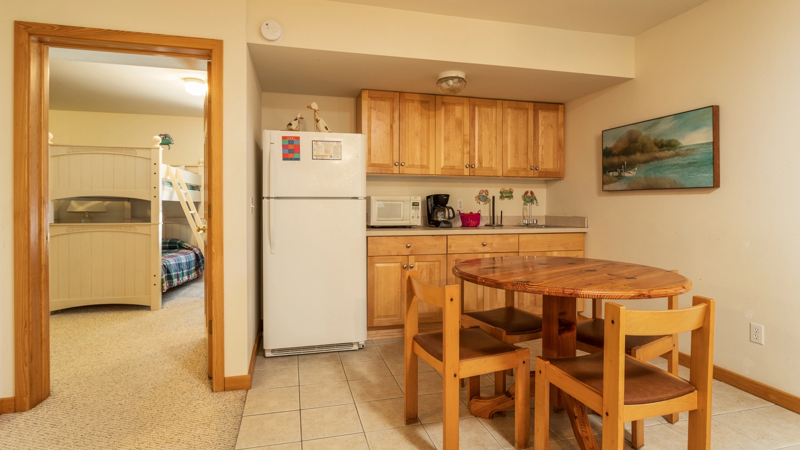 Rec room, sitting area, dining area, knock-hockey table and wet bar with refrigerator; laundry.