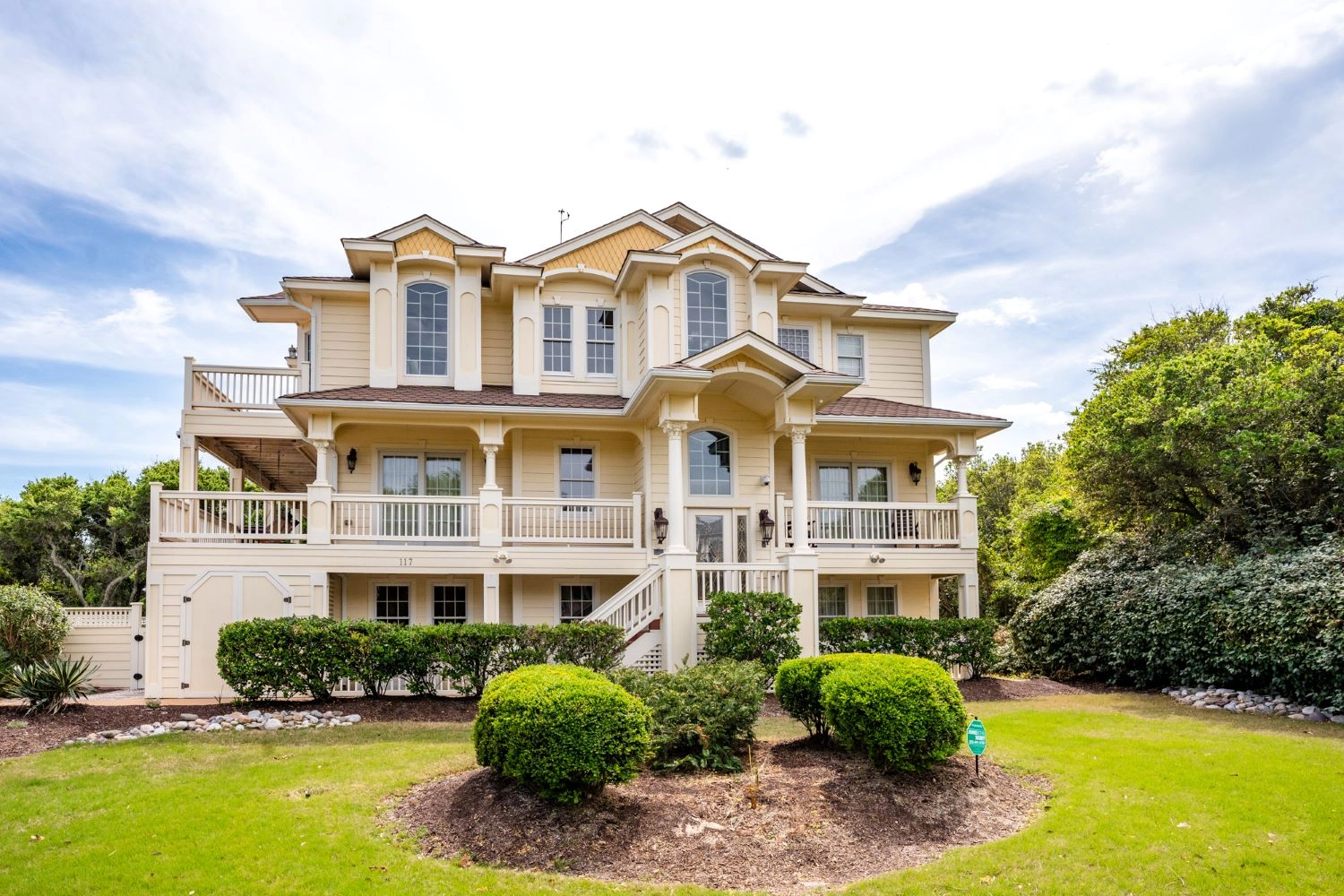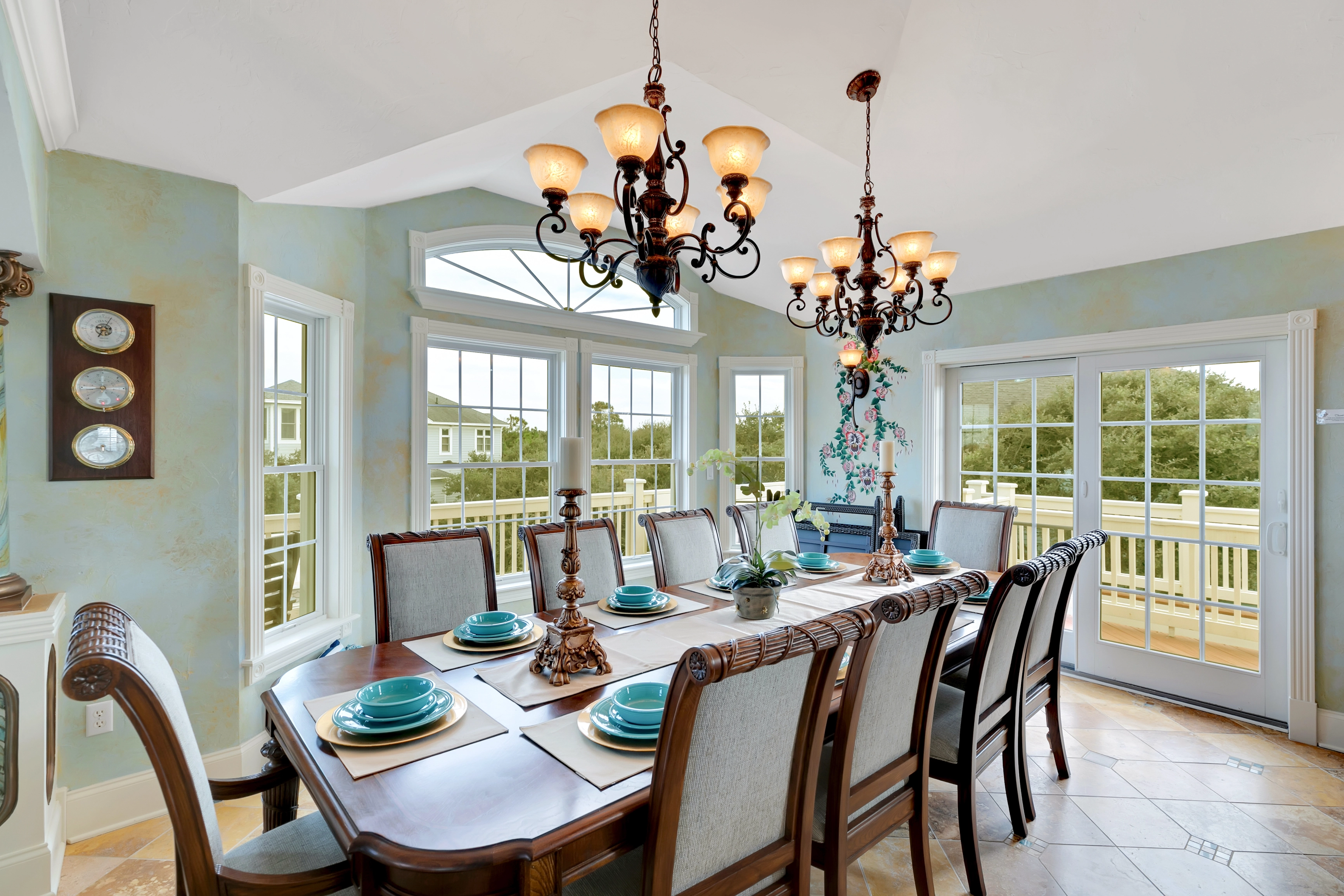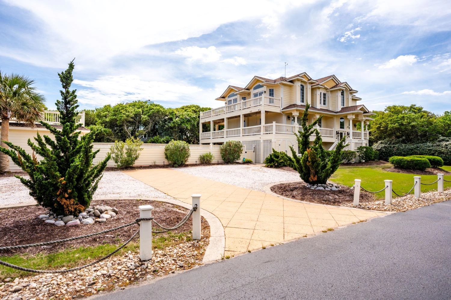 "We had 8 adults and 3 children (under 7 yrs) and the house accommodated us all nicely. Loved that each room had its own full bathroom (plus pwdr rooms on two of the floors). The walk to beach was short, but we did rent a golf cart to help with hauling chairs and umbrellas. The pool area was exceptional - hot tub, covered bar area and full bathroom! The kitchen also had 2 refrigerators and 2 dishwashers which was helpful with big group. We will rent Catch and Relax again!"