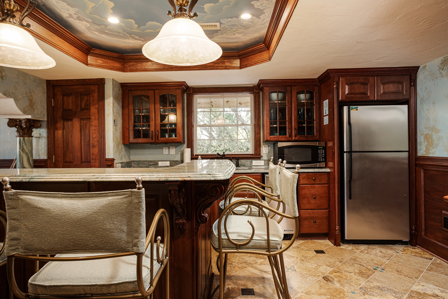 Elevator, gated private pool with hot tub and poolside cabana with bar seating, gas fireplace, sauna and full bath.