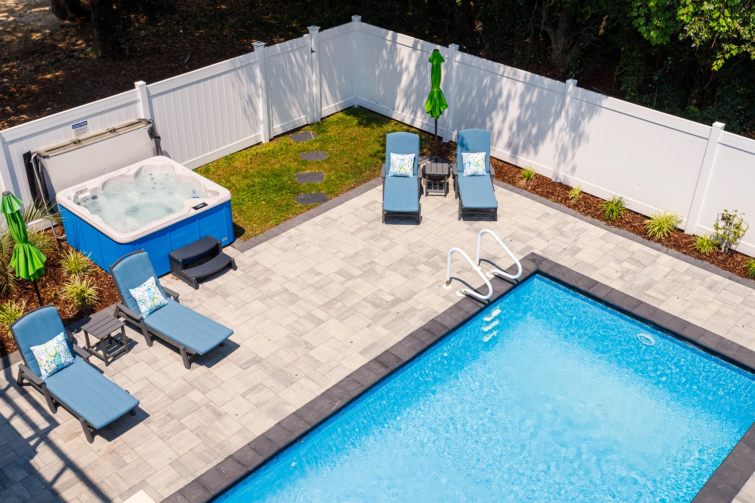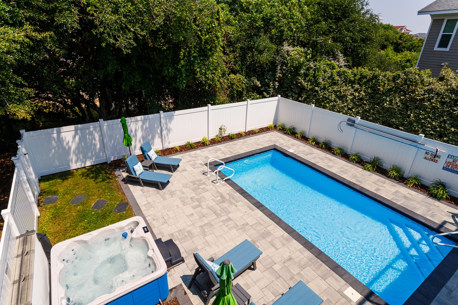 Gated private pool and hot tub.
