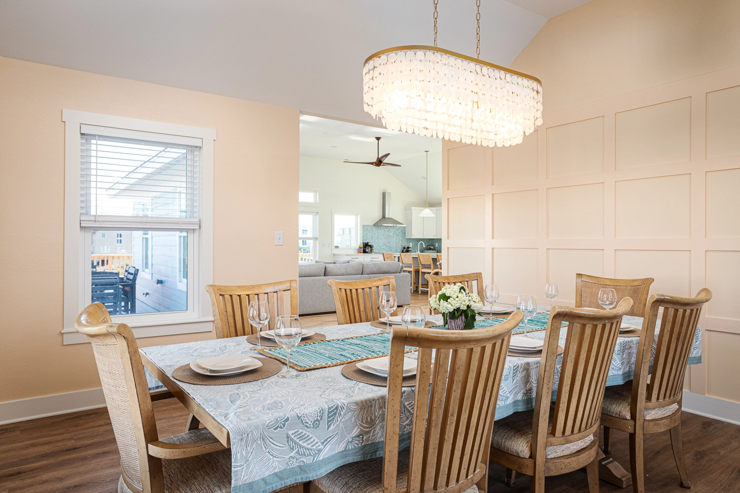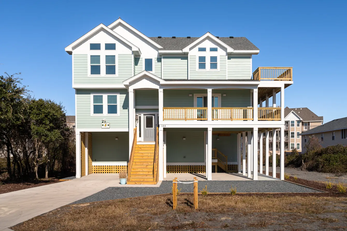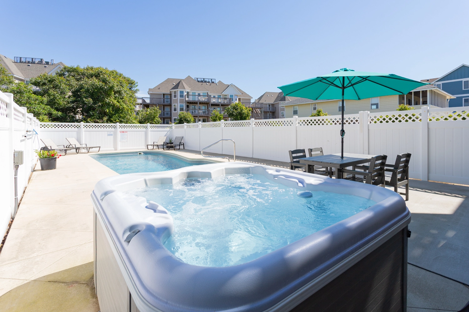 "Proximity to the beach, quiet street, close to Duck and all the shopping. Nice pool. New."
