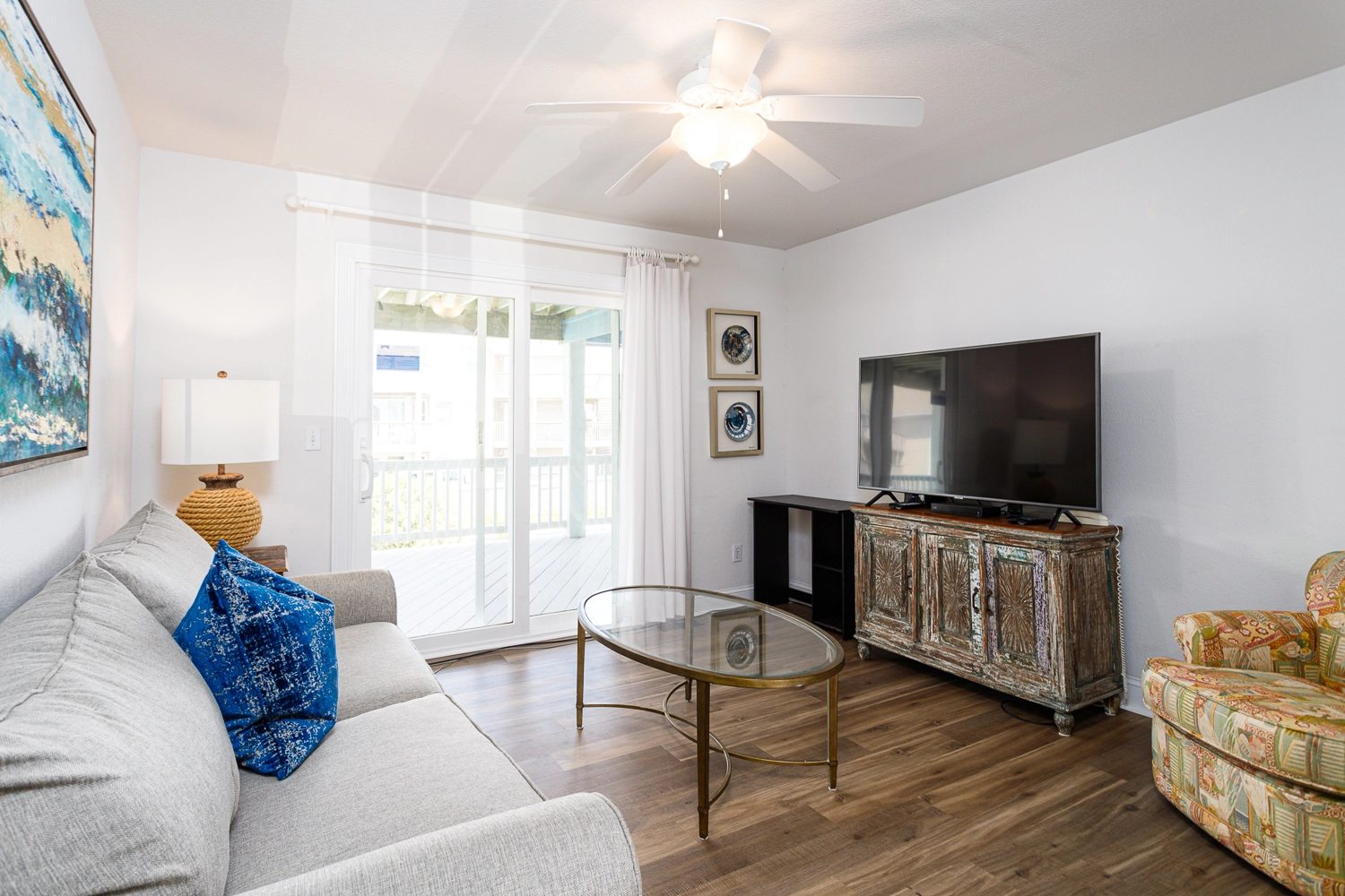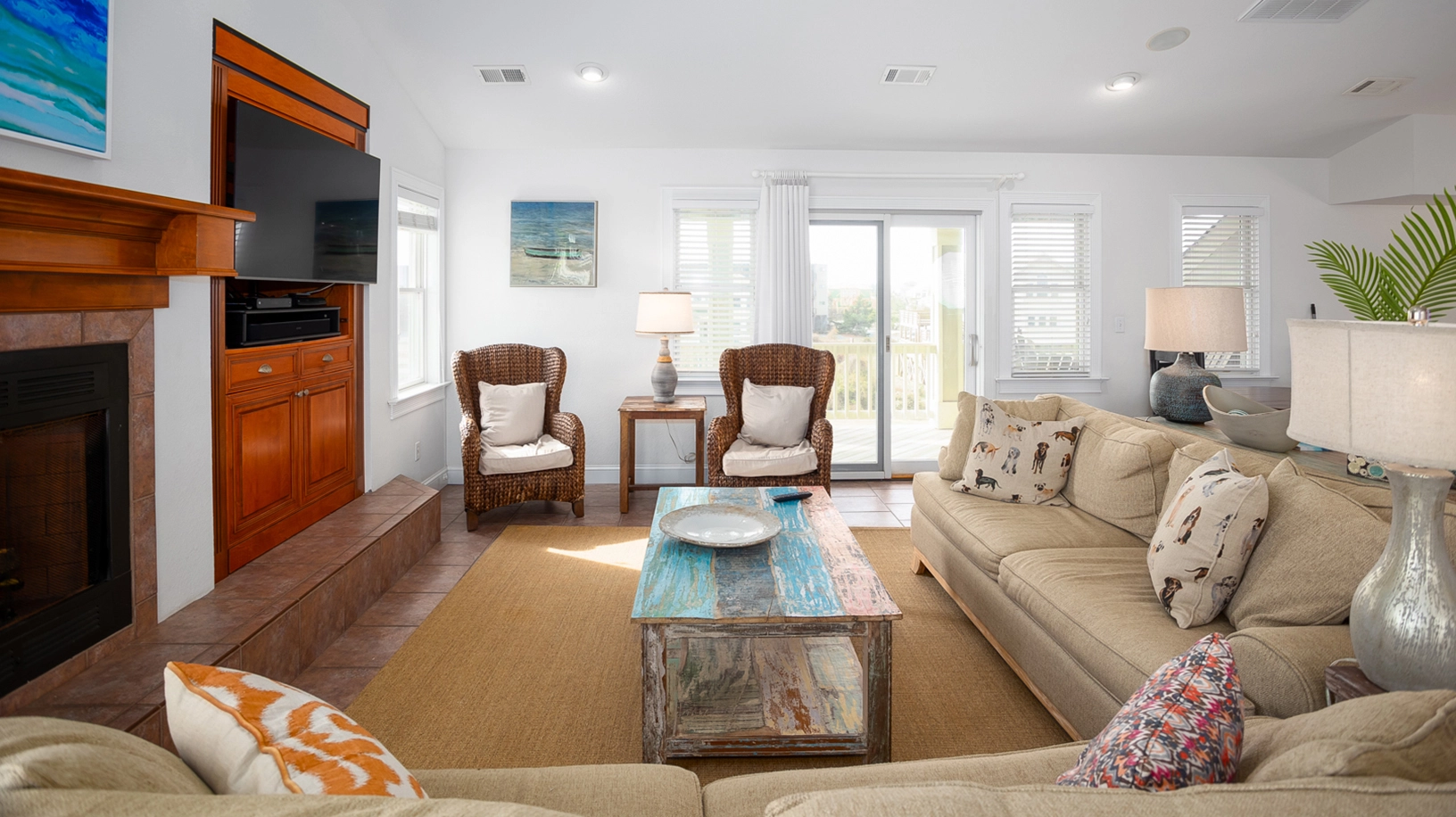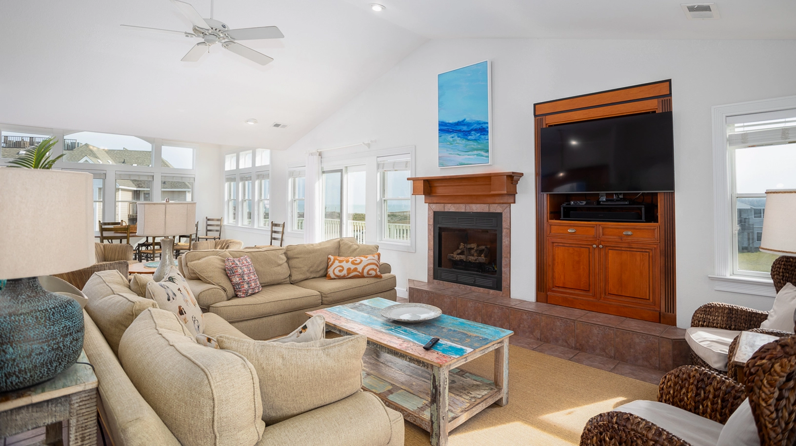 "We love the proximity and ocean views but mostly find that the top floor really works for us. We love the round dining table. And the conversation section next to the sofAs are a favorite of everyone. It lets us have several conversational areas but still all be together. Oh, and a puzzle table is a must for us too. Bedrooms are comfortable (except too form of mattresses in twin room). Suggest a dog/kid gate on the upper deck with stairs."