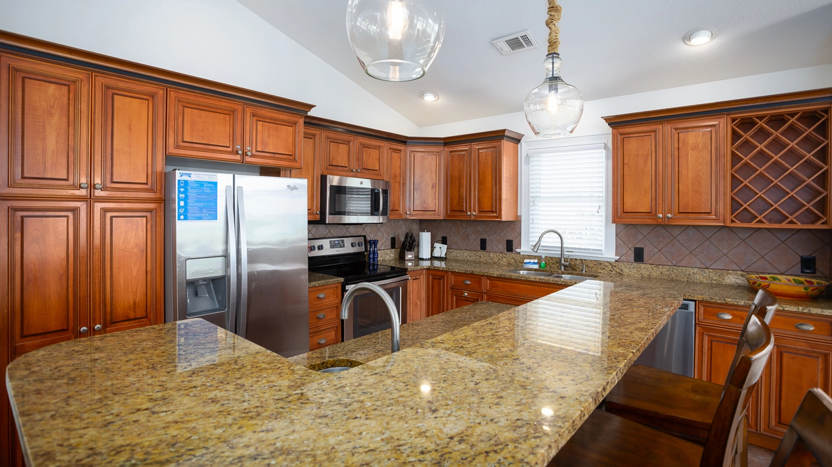 Two refrigerators, electric car outlet (NEMA 14-50 outlet is located on the front left corner of the house behind trash receptacles, bring your own cable/adapter).