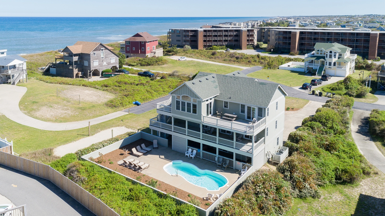 "Great location in Duck. Very close to the beach . Beautiful pool."