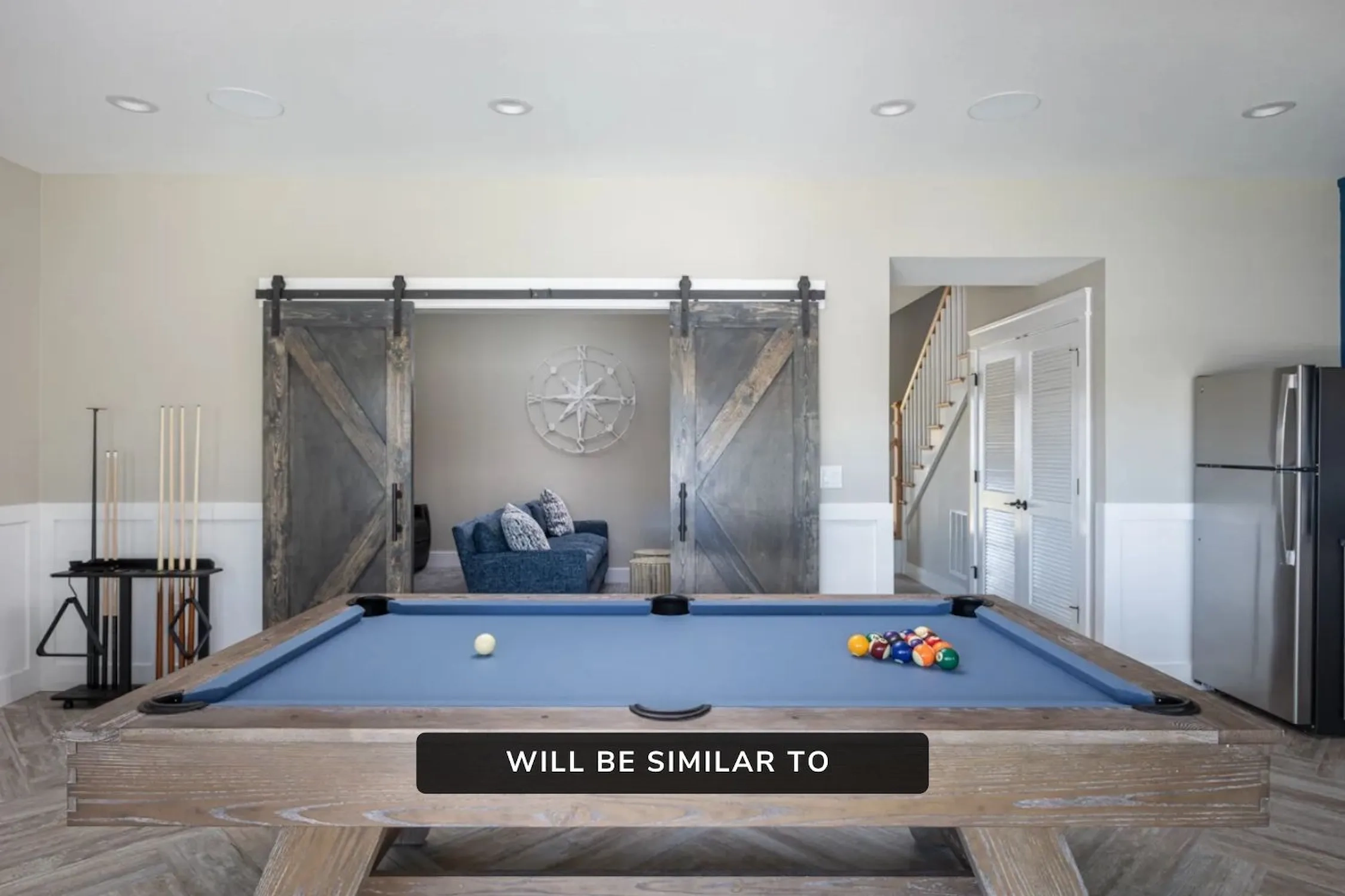 Theater room; rec room with pool table, arcade game, and wet bar; laundry.