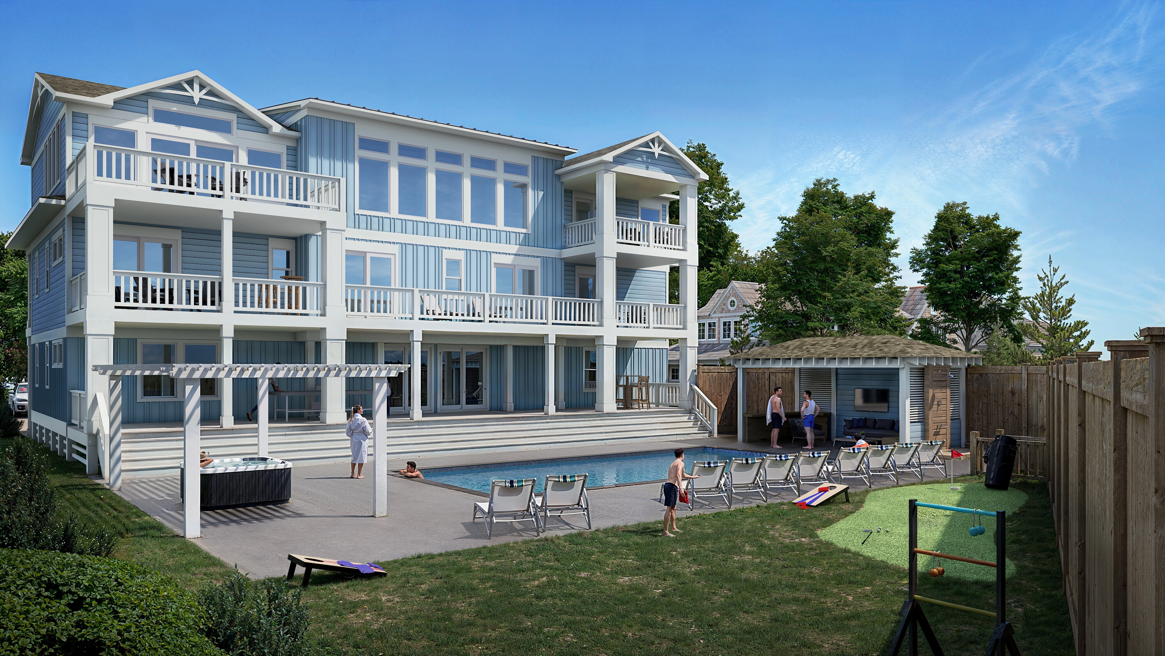 Elevator, private pool with optional pool heat, poolside cabana, hot tub, gas grill, putting green.
