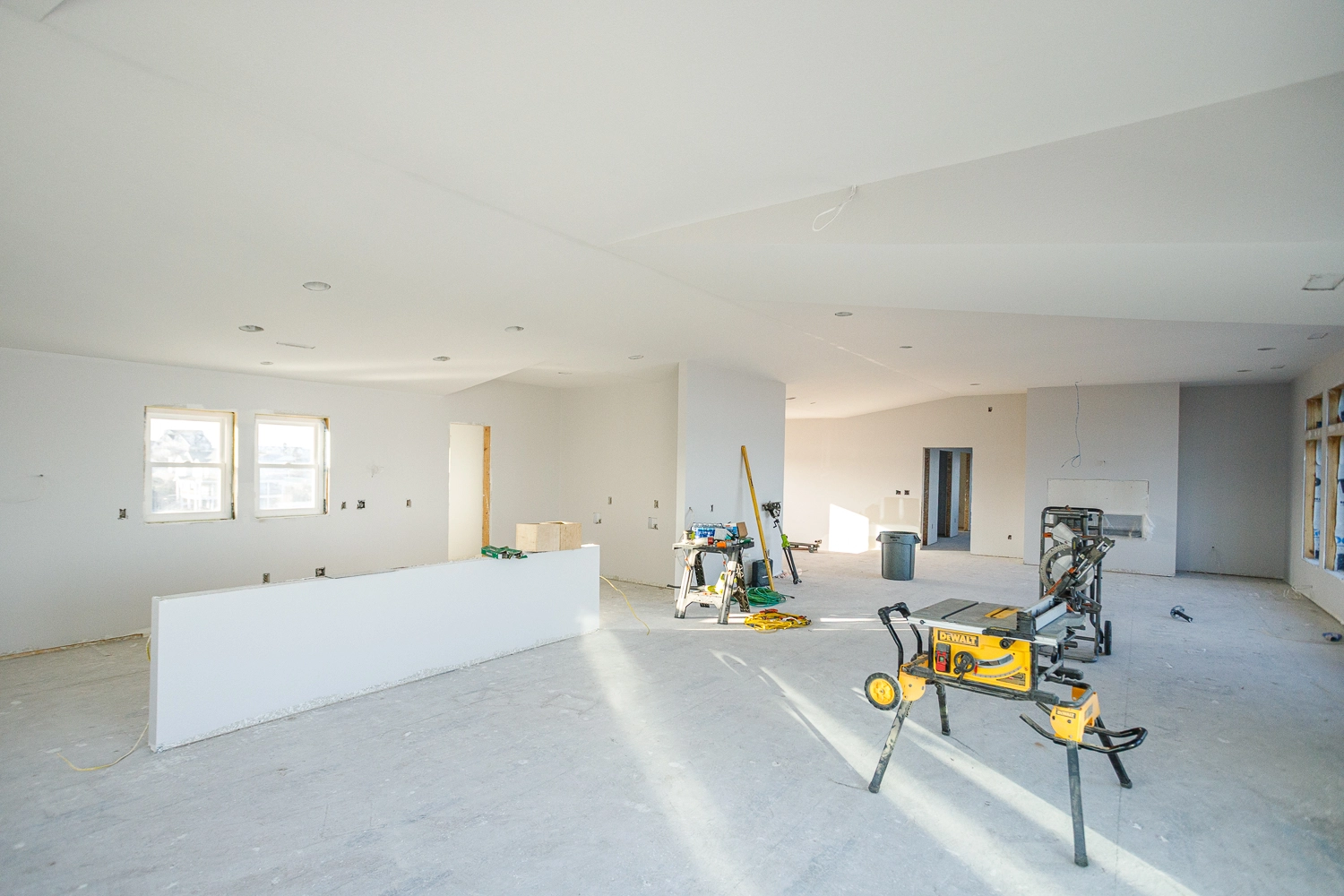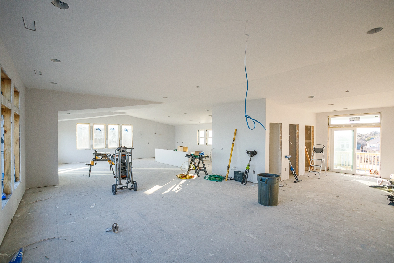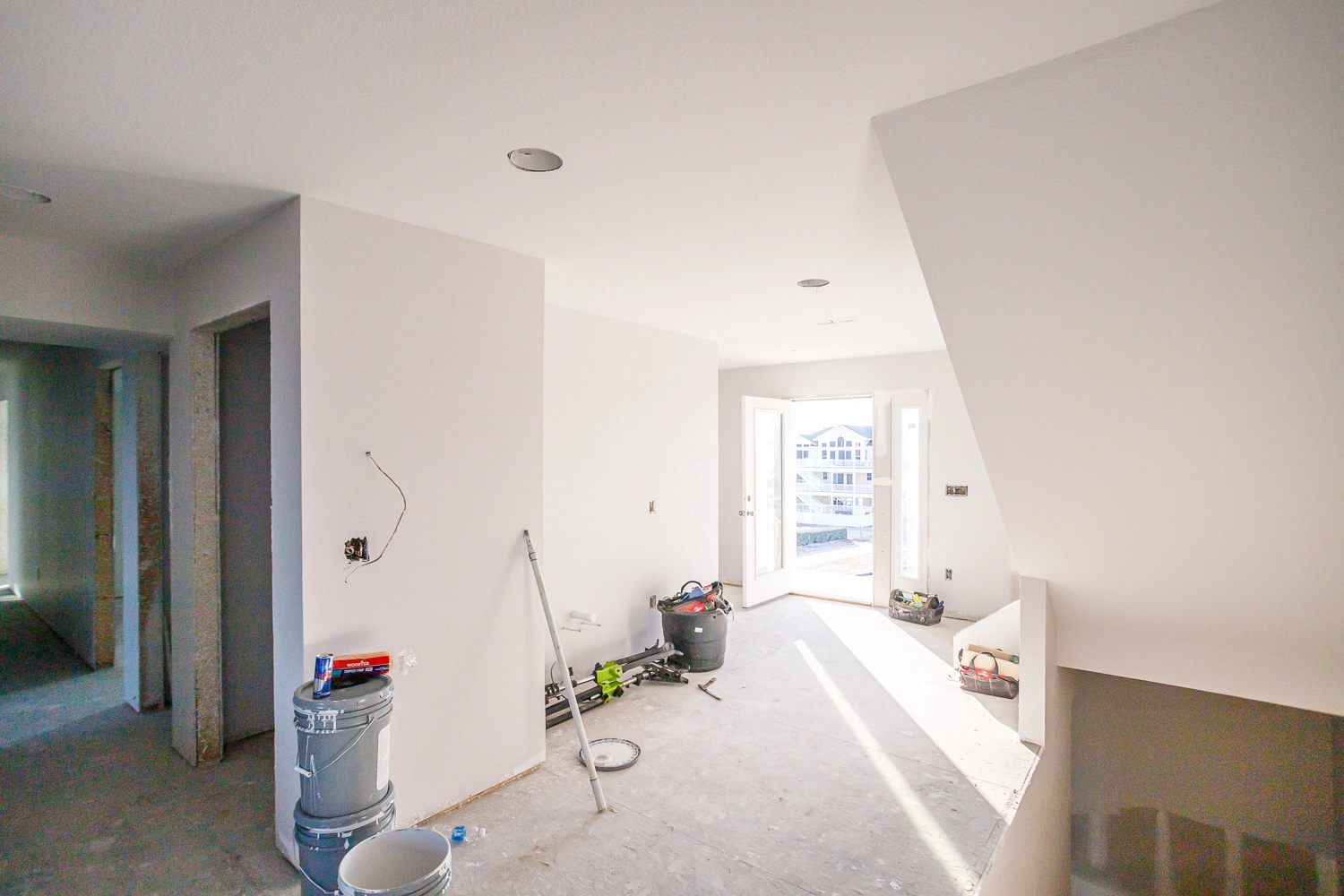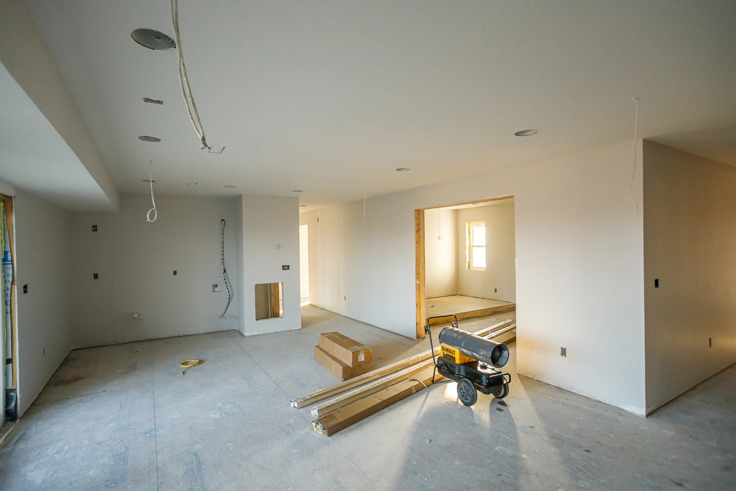 Great room with gas fireplace; kitchen with gas stove; dining area.