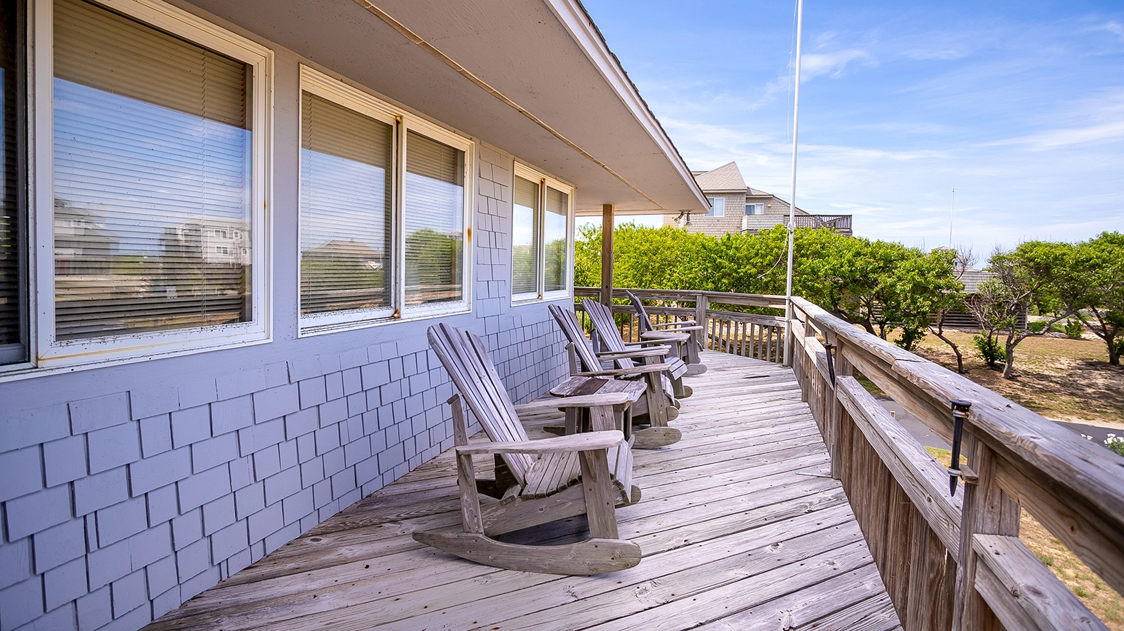 "We loved the proximity to the beach, the screened porch and wrap around porch facing ocean, the porch off the bedrooms with view of the ocean. The various seating places provided more functions."