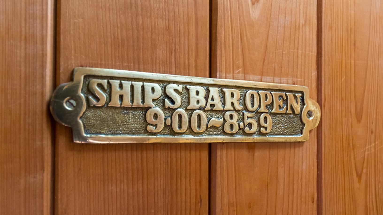 Ship's watch with wet bar and panoramic view of ocean and sound.