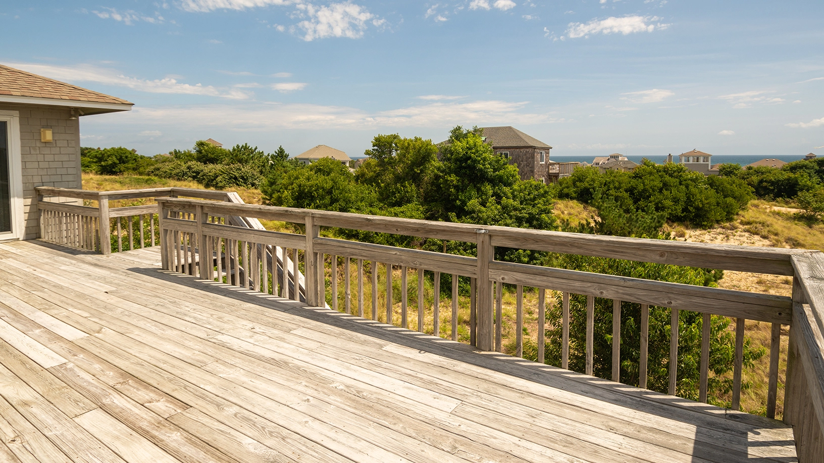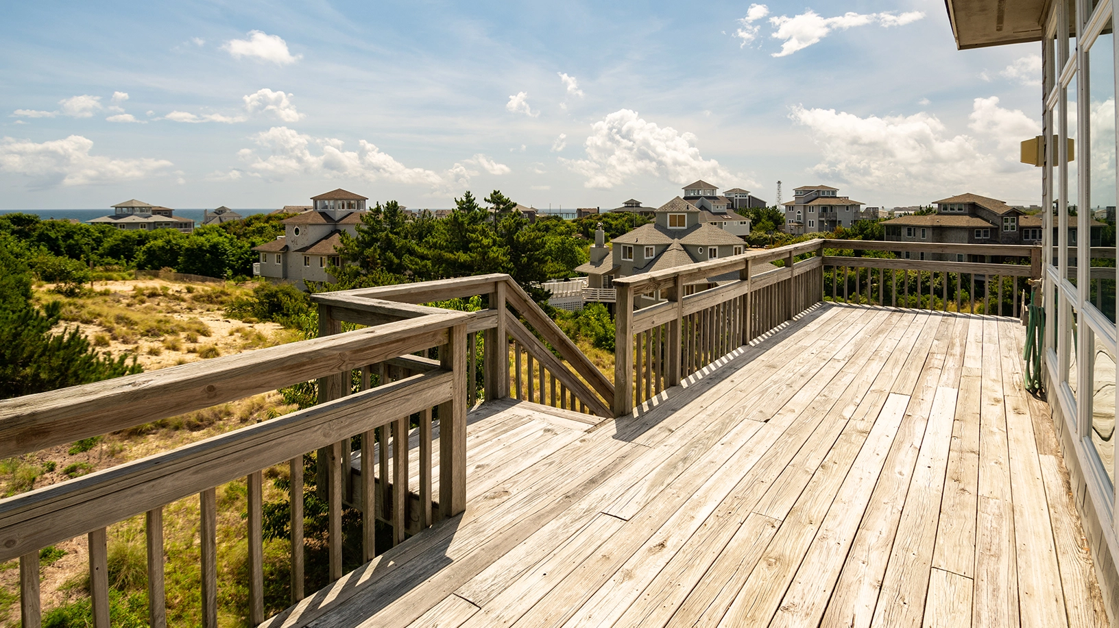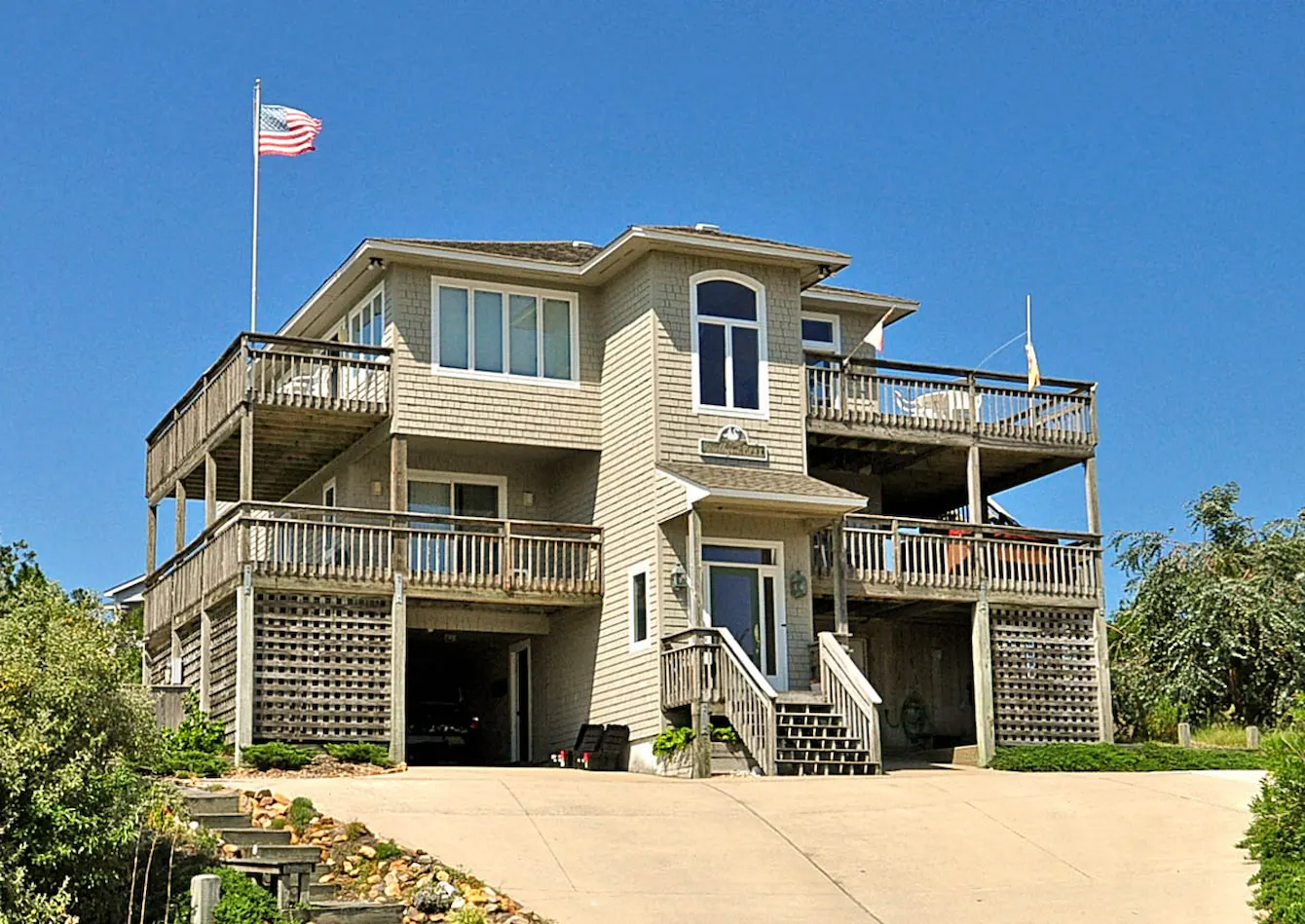 "Loved the view of both the sound and ocean and all the various decks the home offers to enjoy some relaxation. We enjoyed the bright top open floor. The home offered two AC units which helped keep the house at a cool temperature on a pretty warm day. Also, it was wonderful having a pool in the back yard even though there was a community pool."