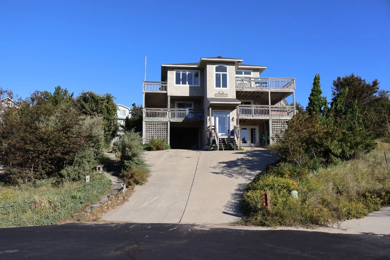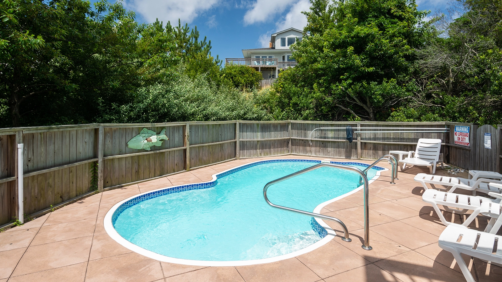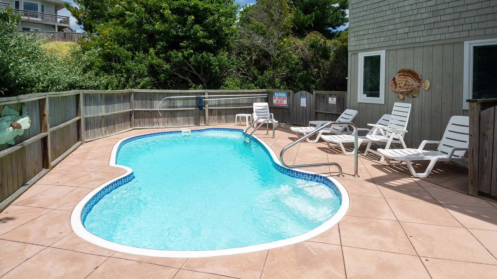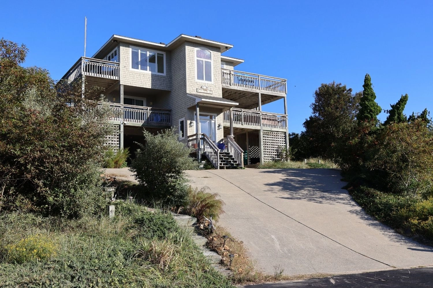"Loved the view of both the sound and ocean and all the various decks the home offers to enjoy some relaxation. We enjoyed the bright top open floor. The home offered two AC units which helped keep the house at a cool temperature on a pretty warm day. Also, it was wonderful having a pool in the back yard even though there was a community pool."