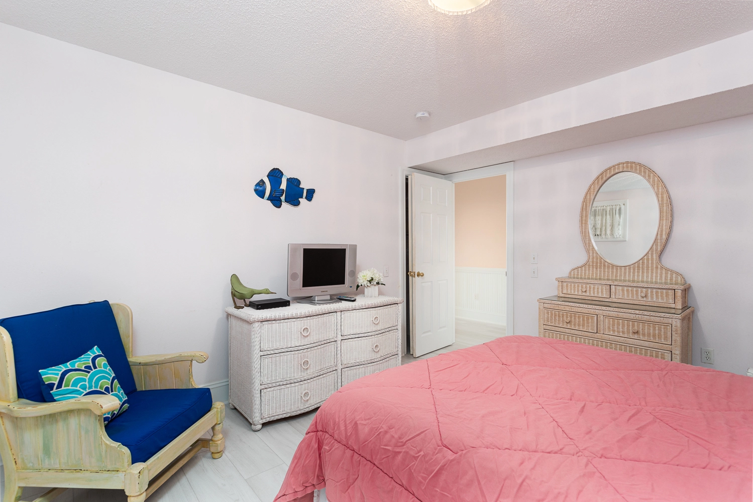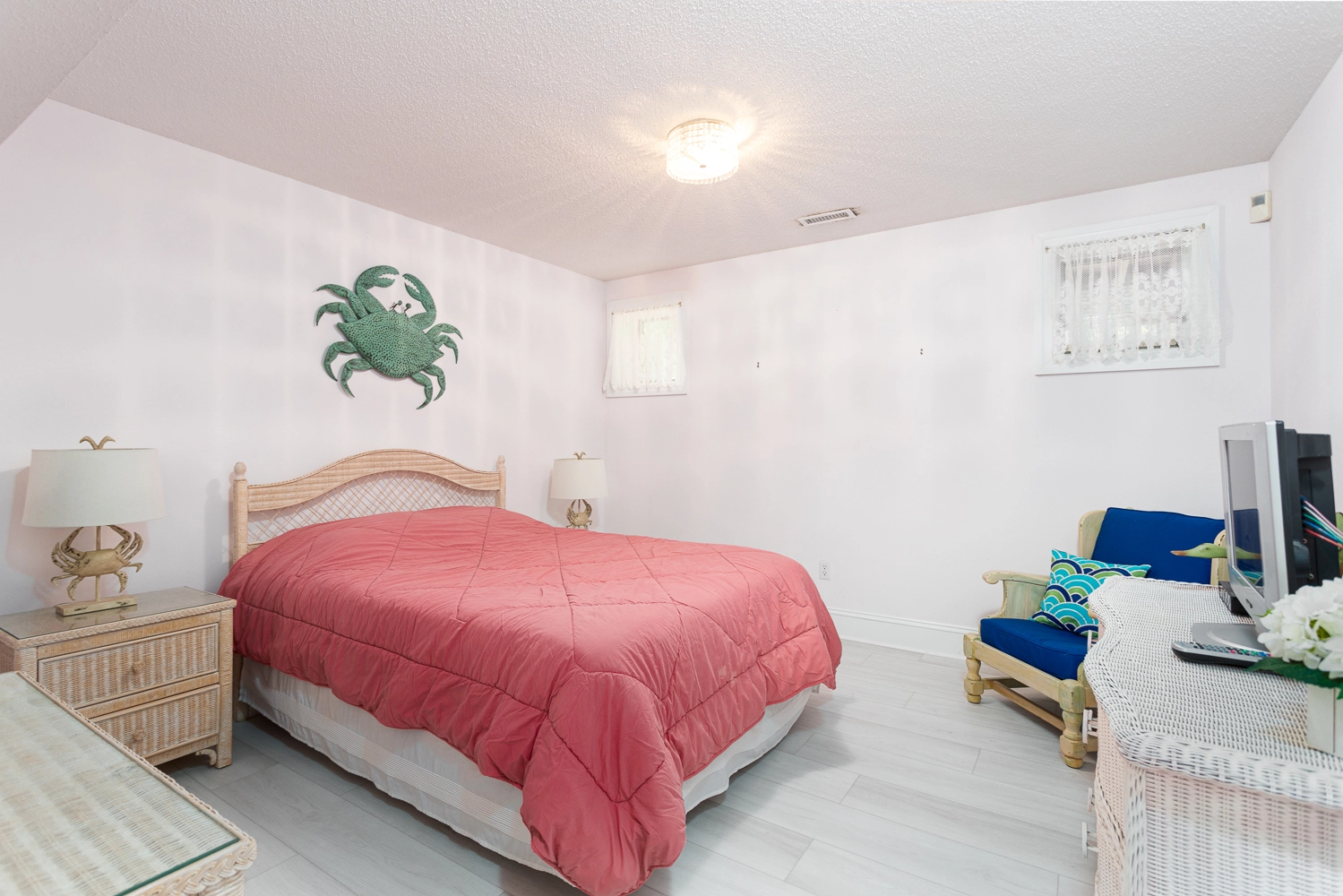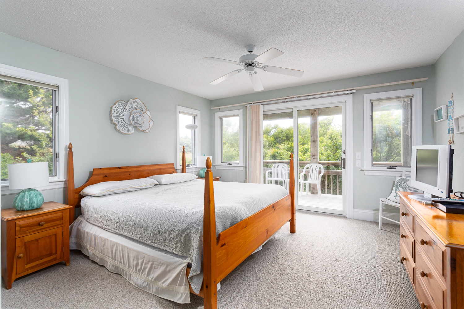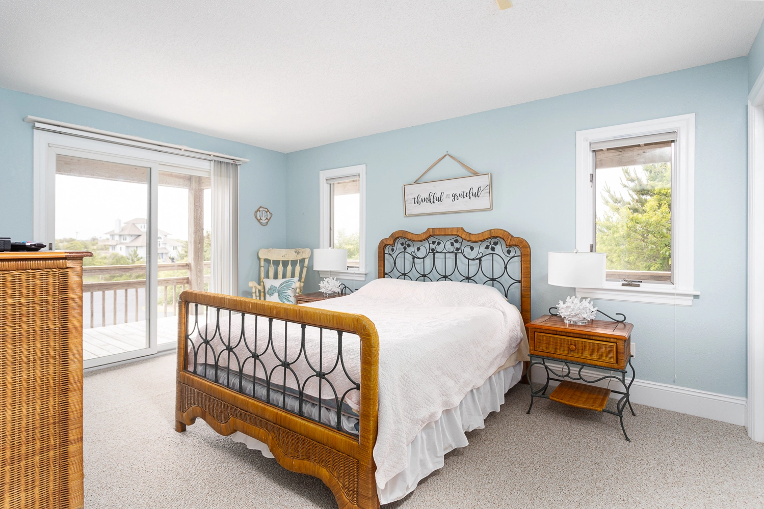 Queen, Semi-private bath, Shower/tub combo, Deck access