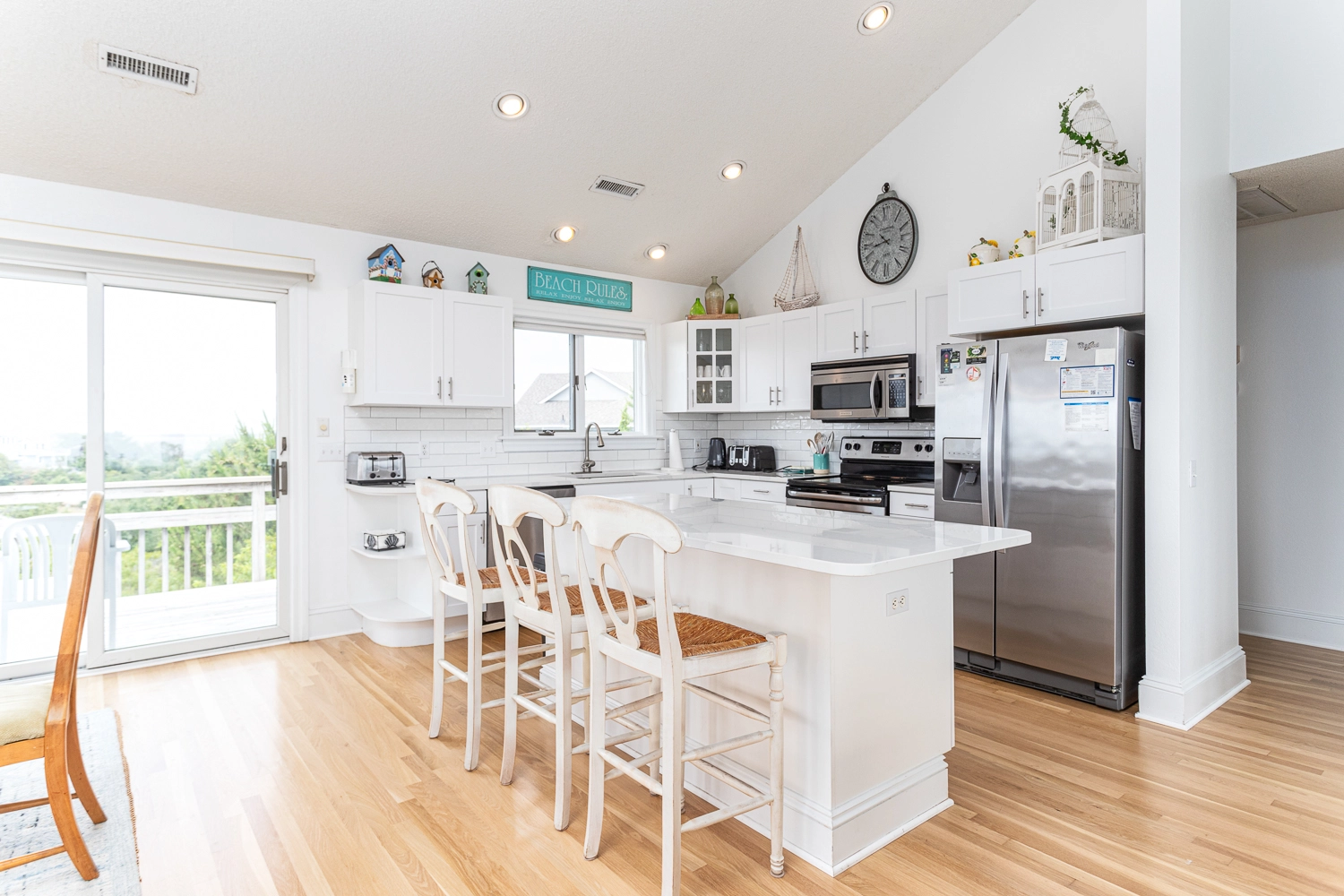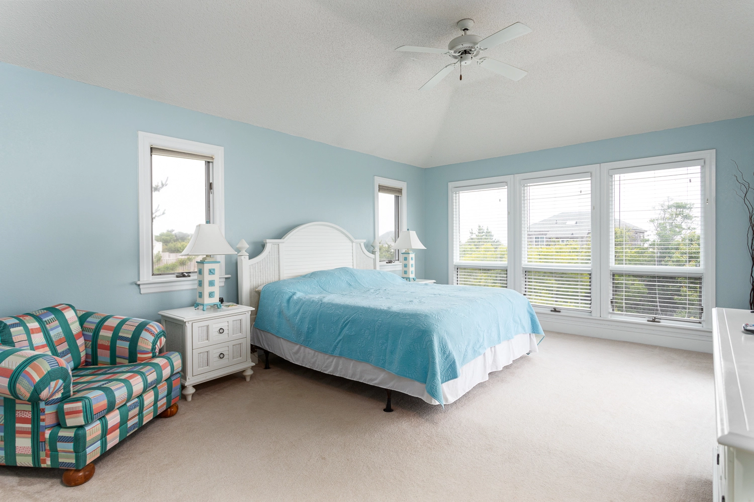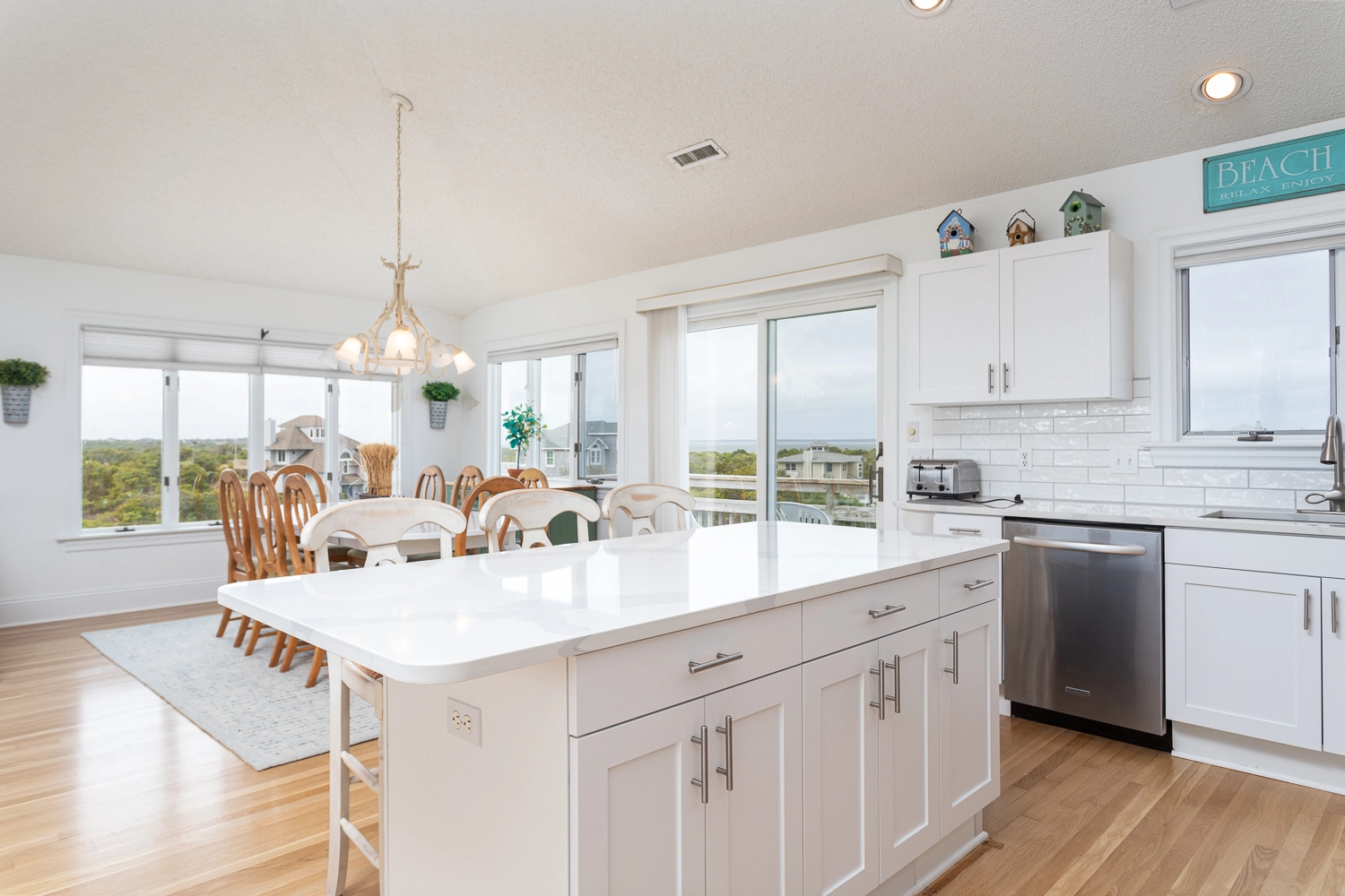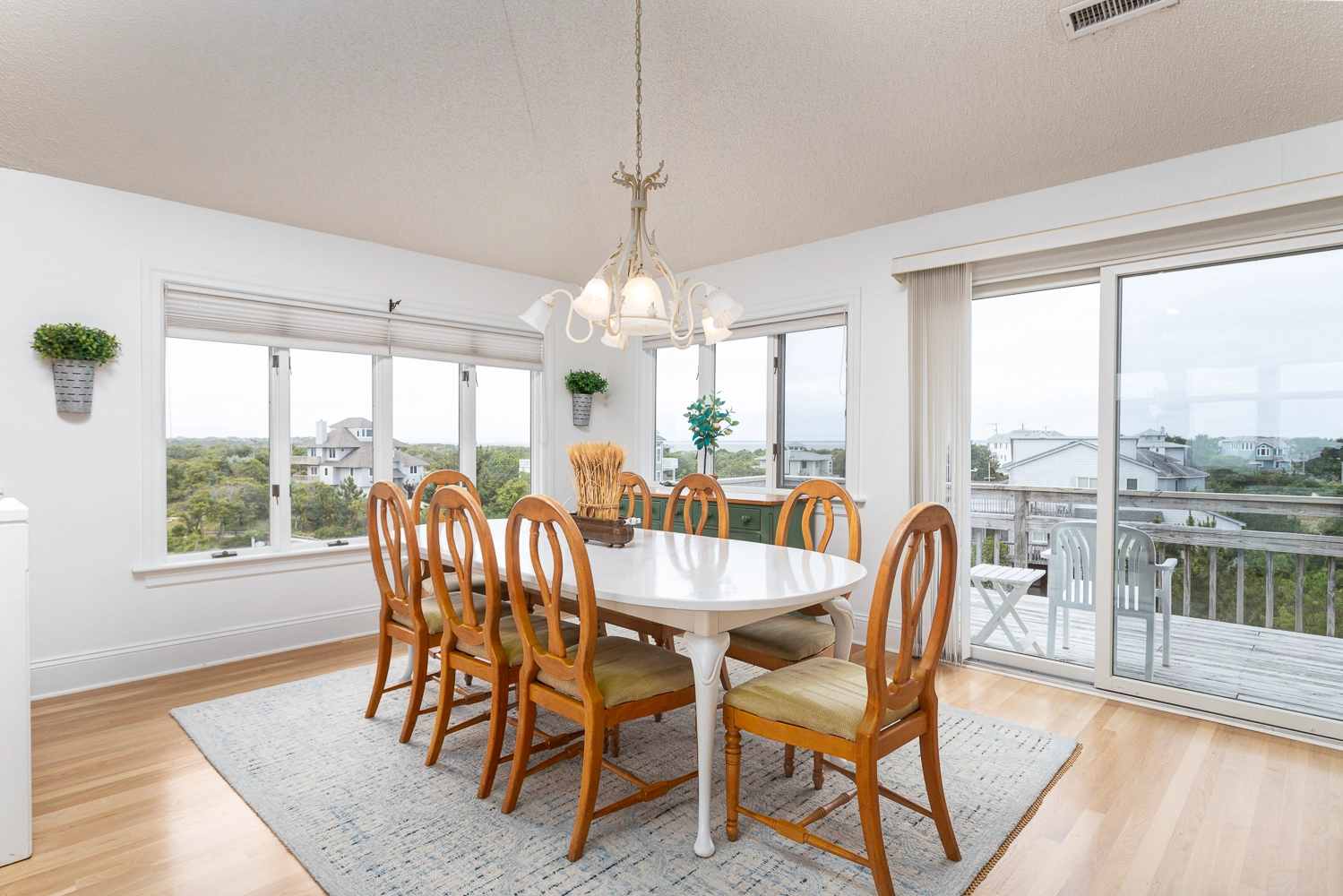 "We enjoyed this home and its great views! It's spacious enough that everyone can spread out when desired and also be together in common spaces at other times. The kitchen was well stocked and we were happy to find beach chairs and a cart. Our only concern was that the living room furnishings are not as pictured as they were very run down - should be replaced for the price. Also vertical blinds falling apart. Otherwise, would rent again!"