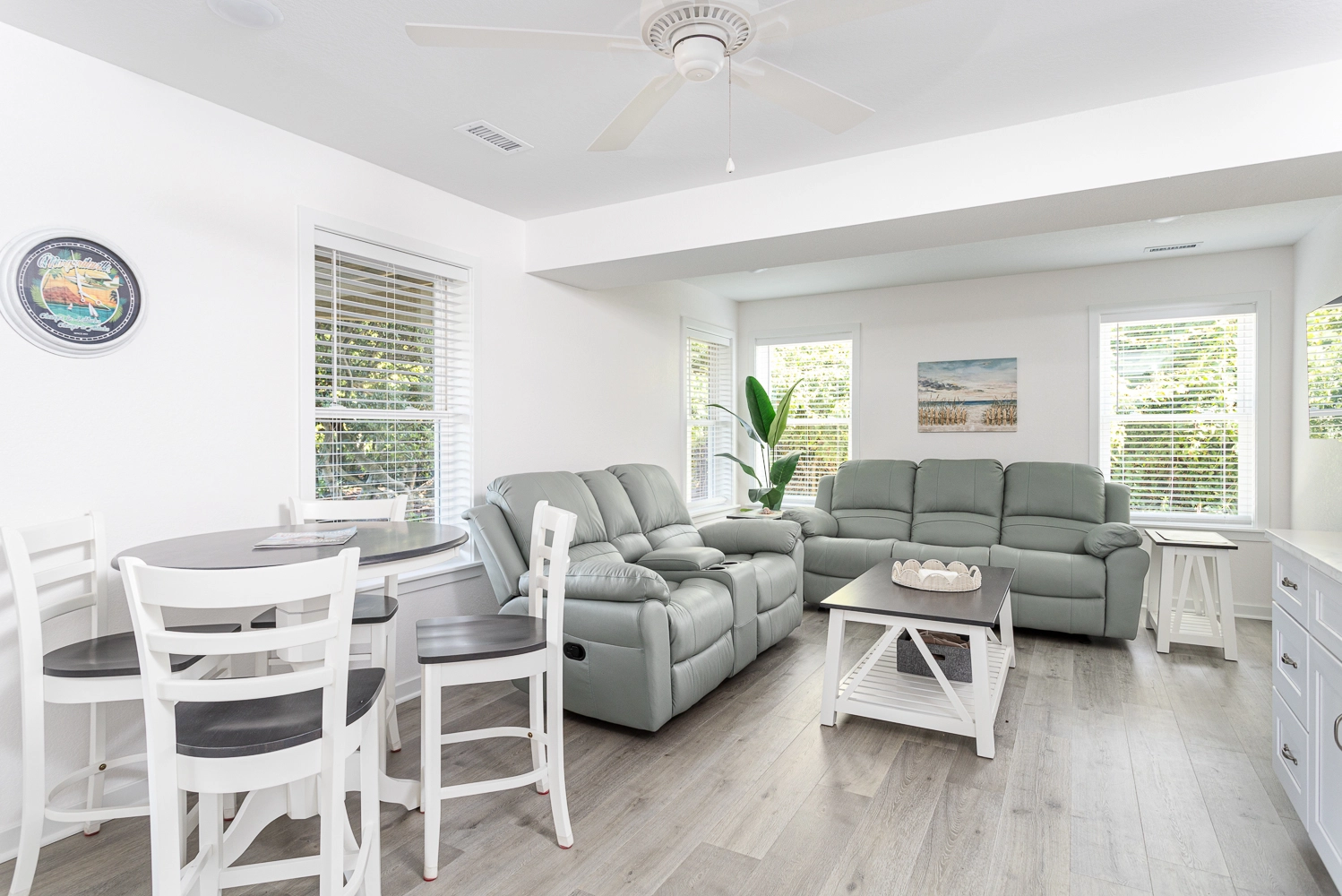 "Plenty of living space. Loved the openness in the kitchen and dining area. Only a short walk from the beach. Road was not busy and quiet. Not to far away from the town. Accommodations were great for 8 people."