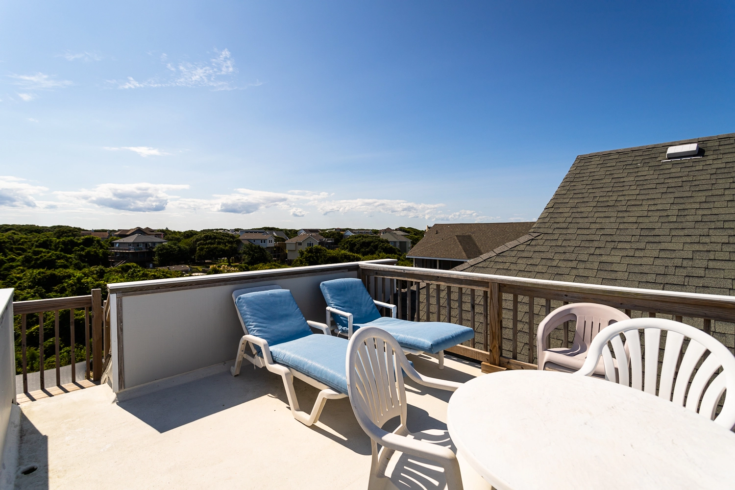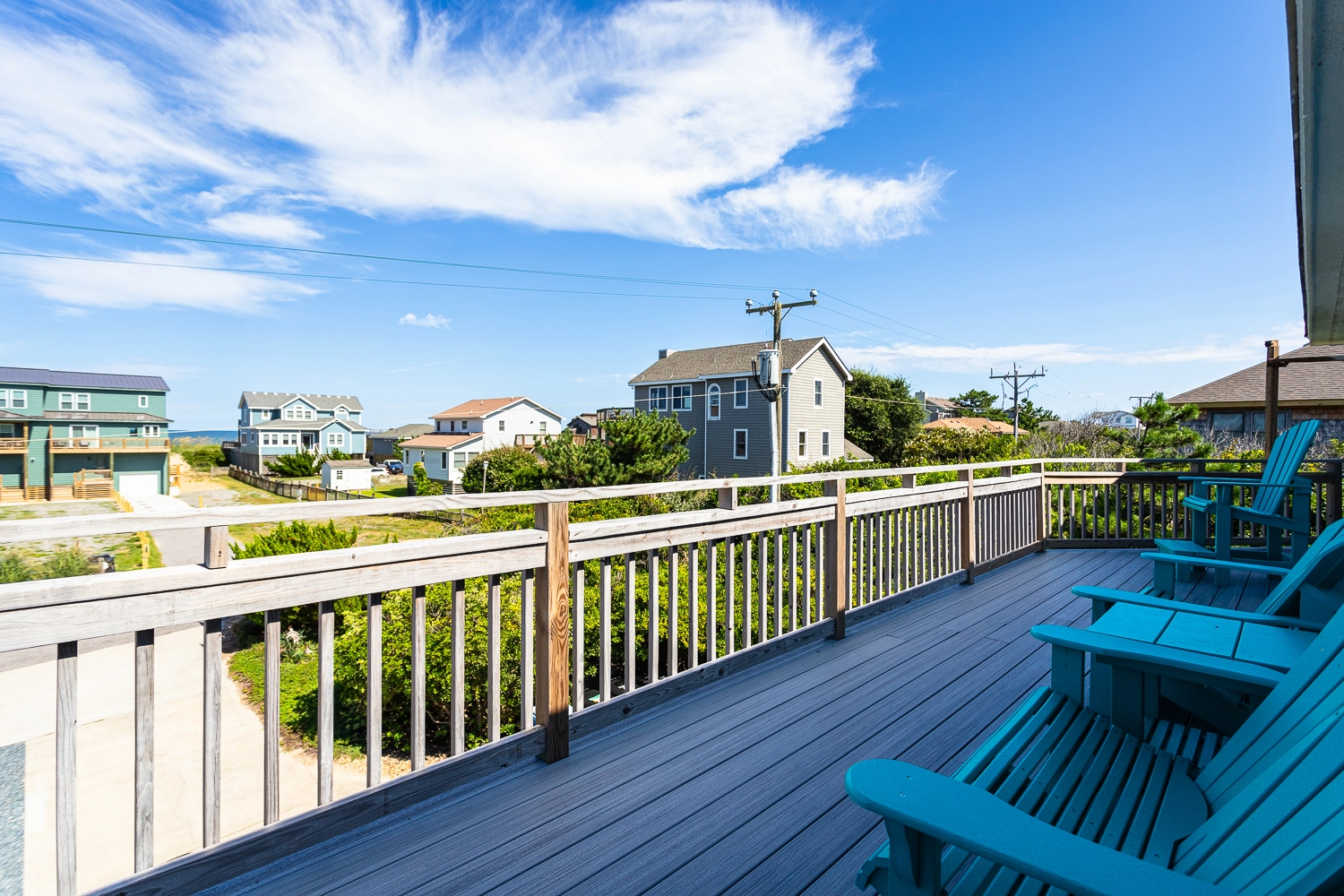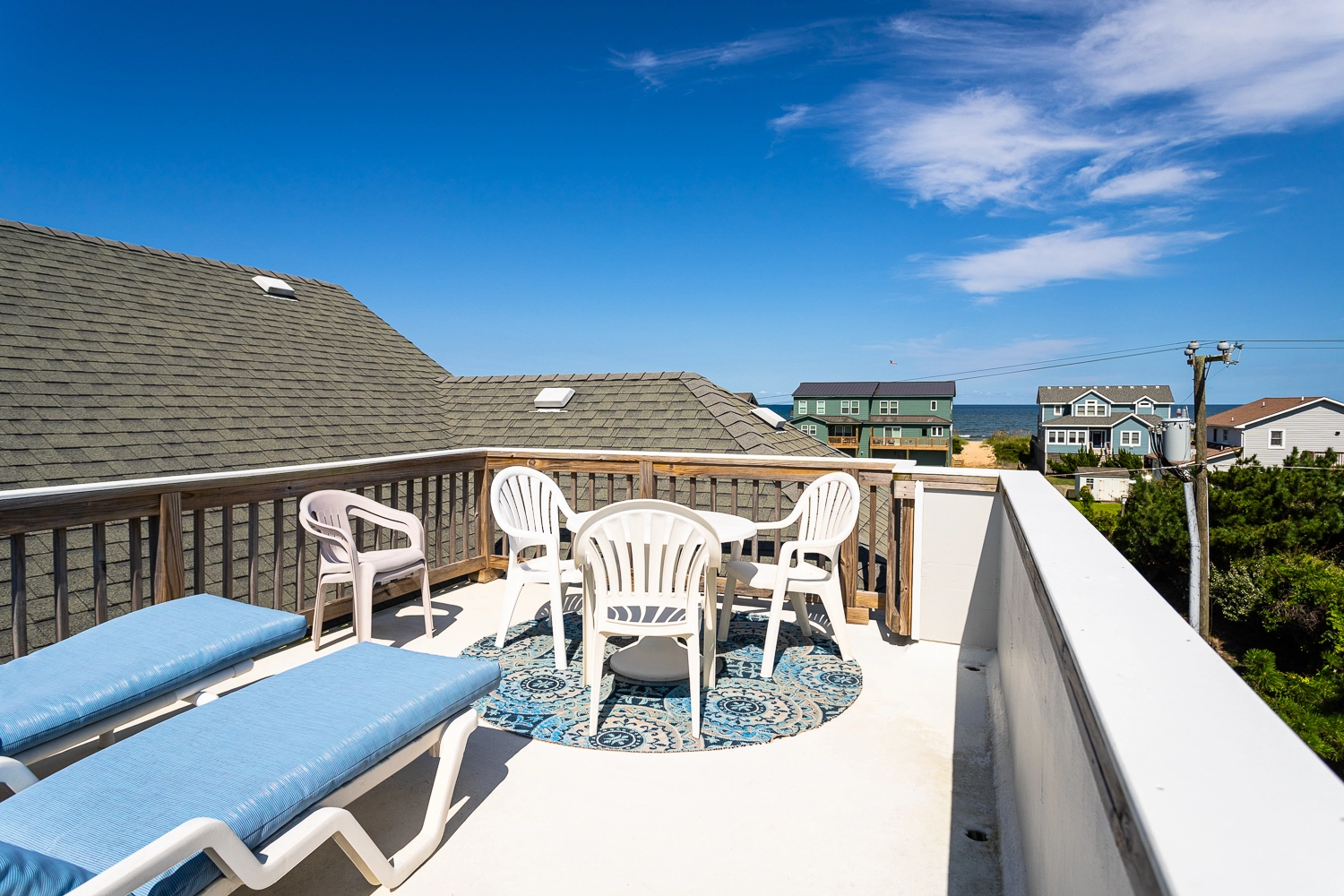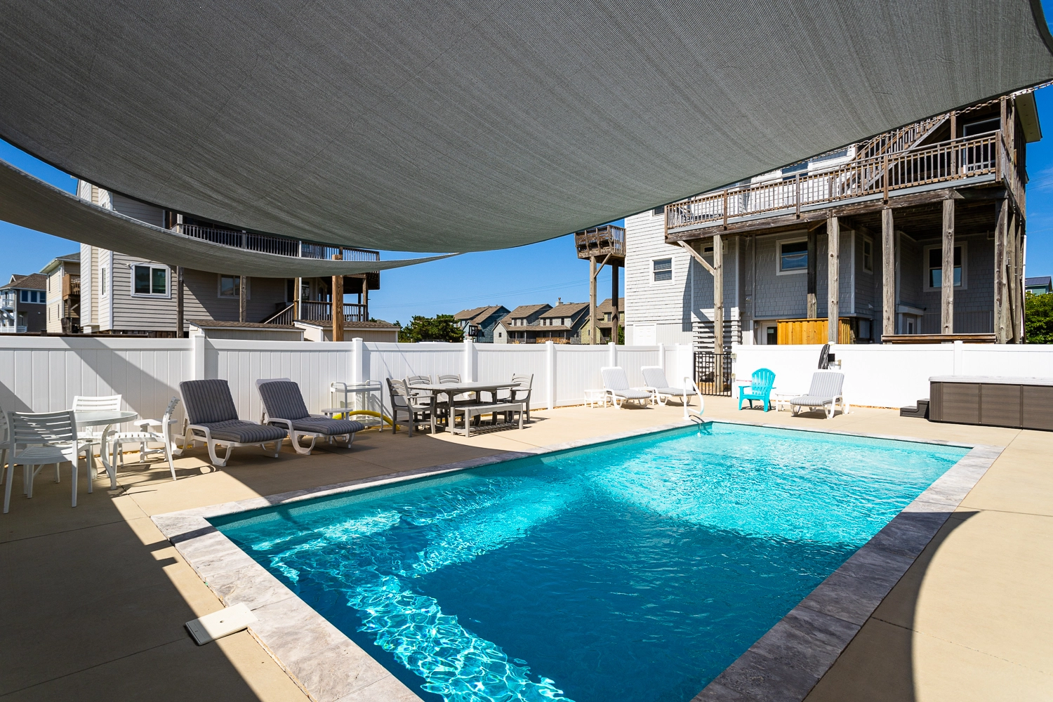 "Great house with wonderful kitchen and family room space, lots of decks on every level and we especially loved the top deck for coffee in the am and looking at stars at night. The pool was excellent! Clean, refreshing and just right for two families with a few kids. Out door shower was so nice. The ocean right across the street and everything in Duck just minutes away. We loved the Safari Tour to see the wild horses up north. Saw dolphins and pelicans and many birds. Thank you to the owners! Oh, and the ice maker in the kitchen was awesome - used it all the time!"
