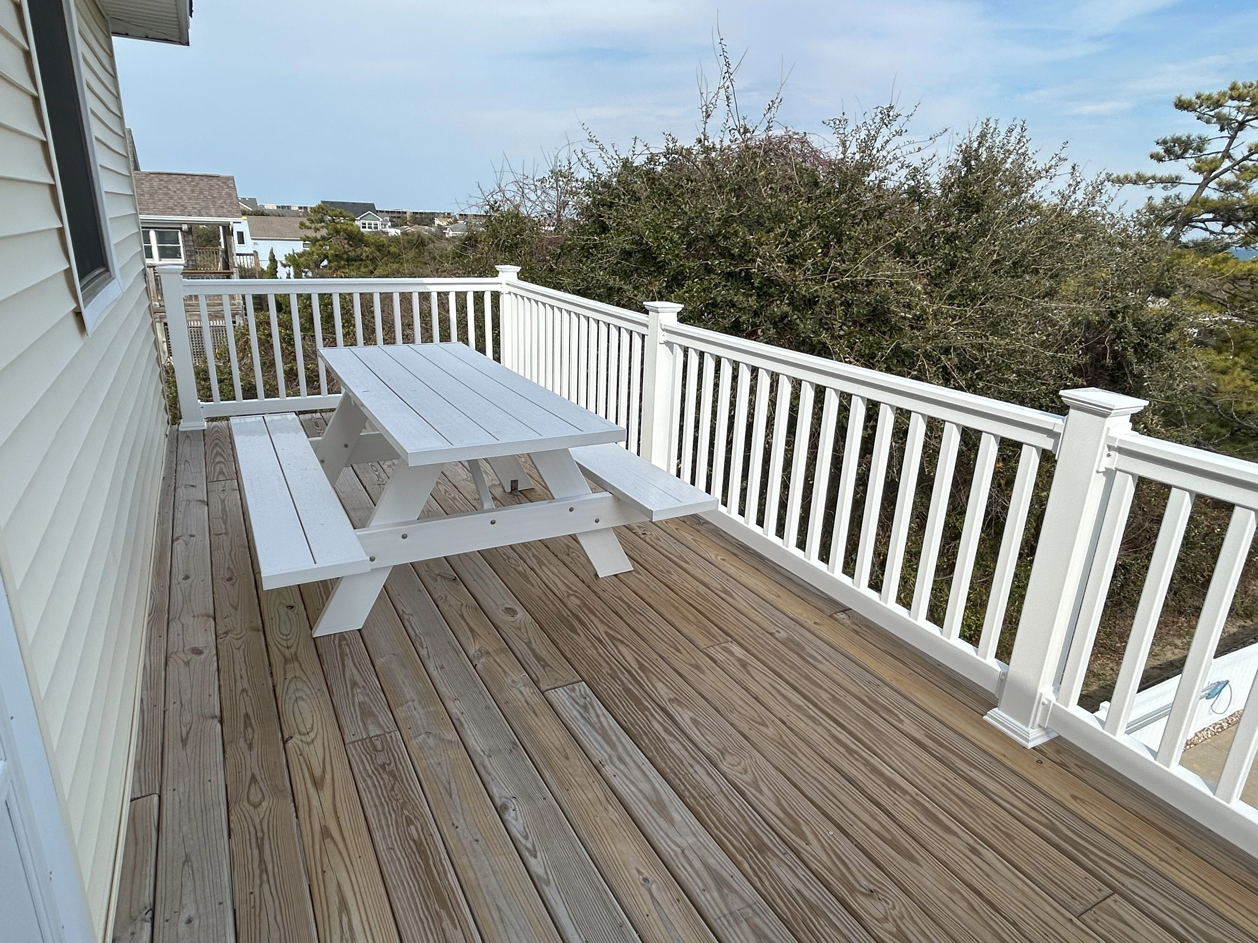 "A little dated, but had what we needed for a good week at the beach. Nice view of sunrise from top deck. Short walk to beach and Duck boardwalk"