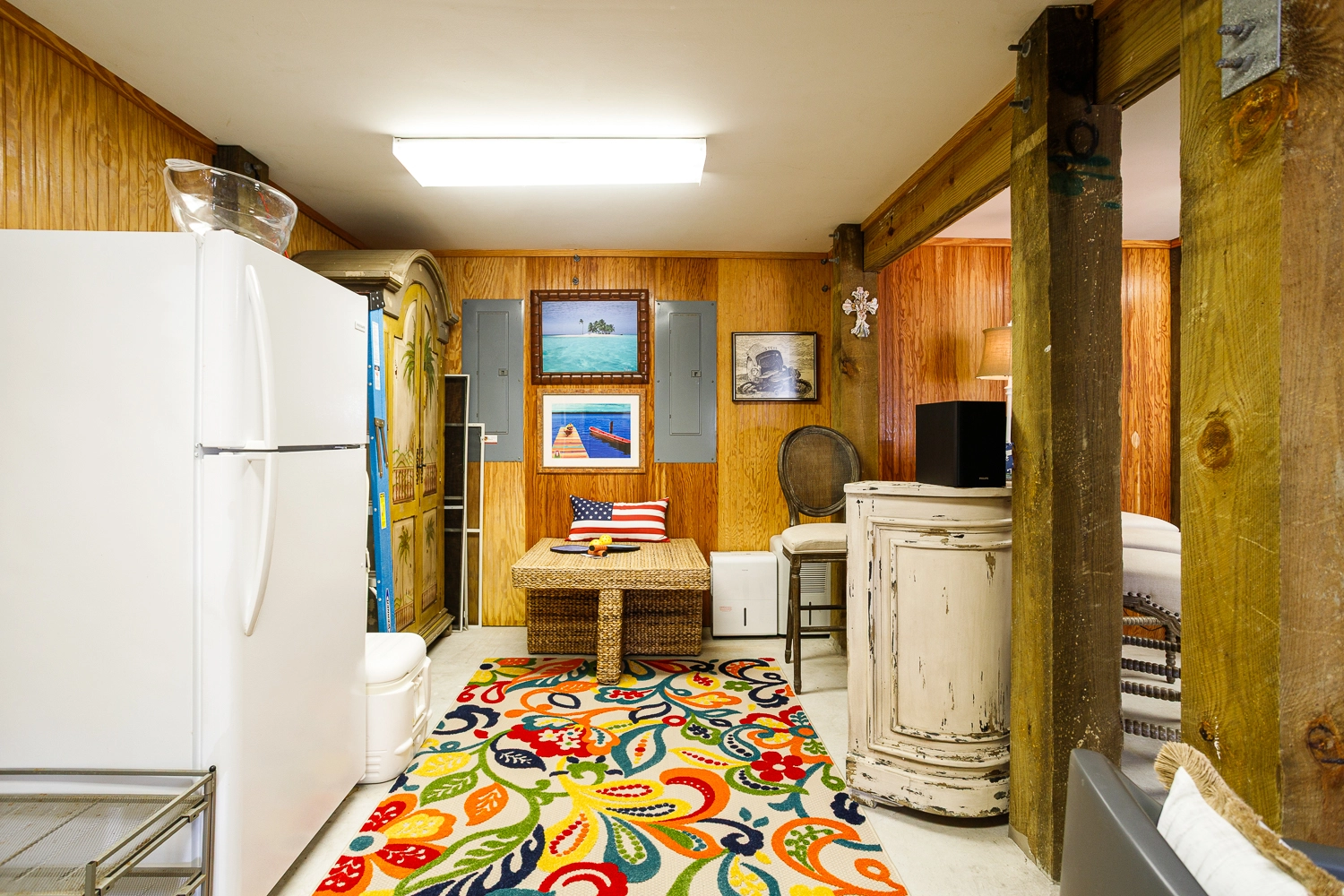Office with sitting area; laundry.