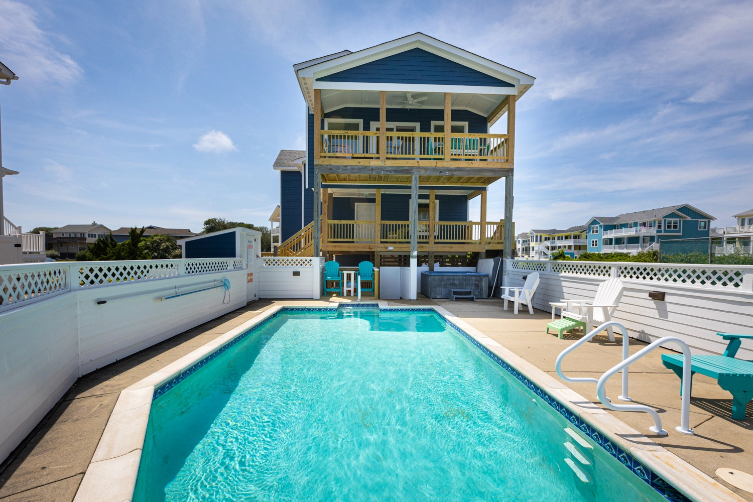 "We stayed at Family Getaway in Aug 2023. The house was newly renovated and absolutely beautiful, spacious, a very short walk to the beach and offered my children a private pool, a cul-de-sac to ride their scooters in addition to a cool bunk room and a massive living room television! My sister and I enjoyed the hot tub, king beds, spacious and nicely decorated bathrooms and showers, as well as the short walk to the beach. The kitchen was open to the living and dining areas which was great. We had space more ppl than could make the trip. I could not have imagined a more enjoyable place to stay. Additionally our home was located near several beach stores including duck donuts, ice cream, a candy store and a pharmacy when we needed to pick up ear drops from all the swimming! Gorgeous home, well appointed, close to the beach, open spaces inside and beautiful views outside. We could hear the ocean waves at night from the top balcony and see the ocean between the two oceanfronts flanking the beach access. Would stay again!"