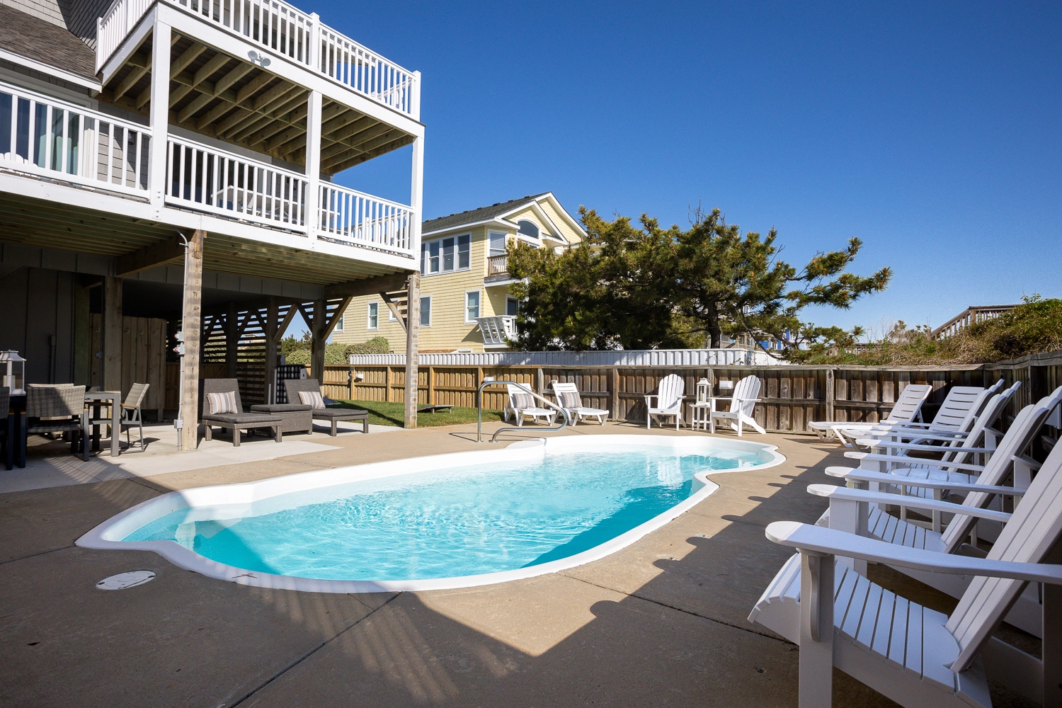 "We entered the front door and felt like the home was designed and featured on one of the shows on HGTV…beautiful. The private beach entrance coming out of the second floor was a great feature. I positioned 2 of the high back chairs on the end of the walkway and my wife and I had coffee and watched the sunrise everyday of the week. Heated pool was a bonus and probably wouldn’t have been in use if it wasn’t as it was still early in the season. Thanks for a great week."