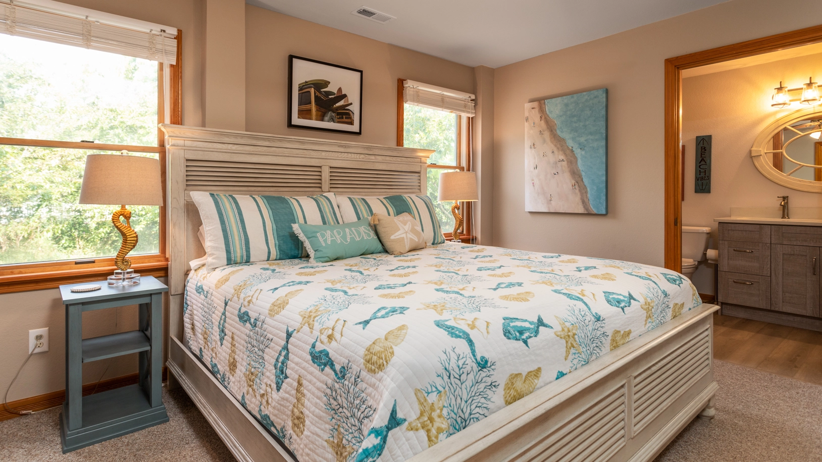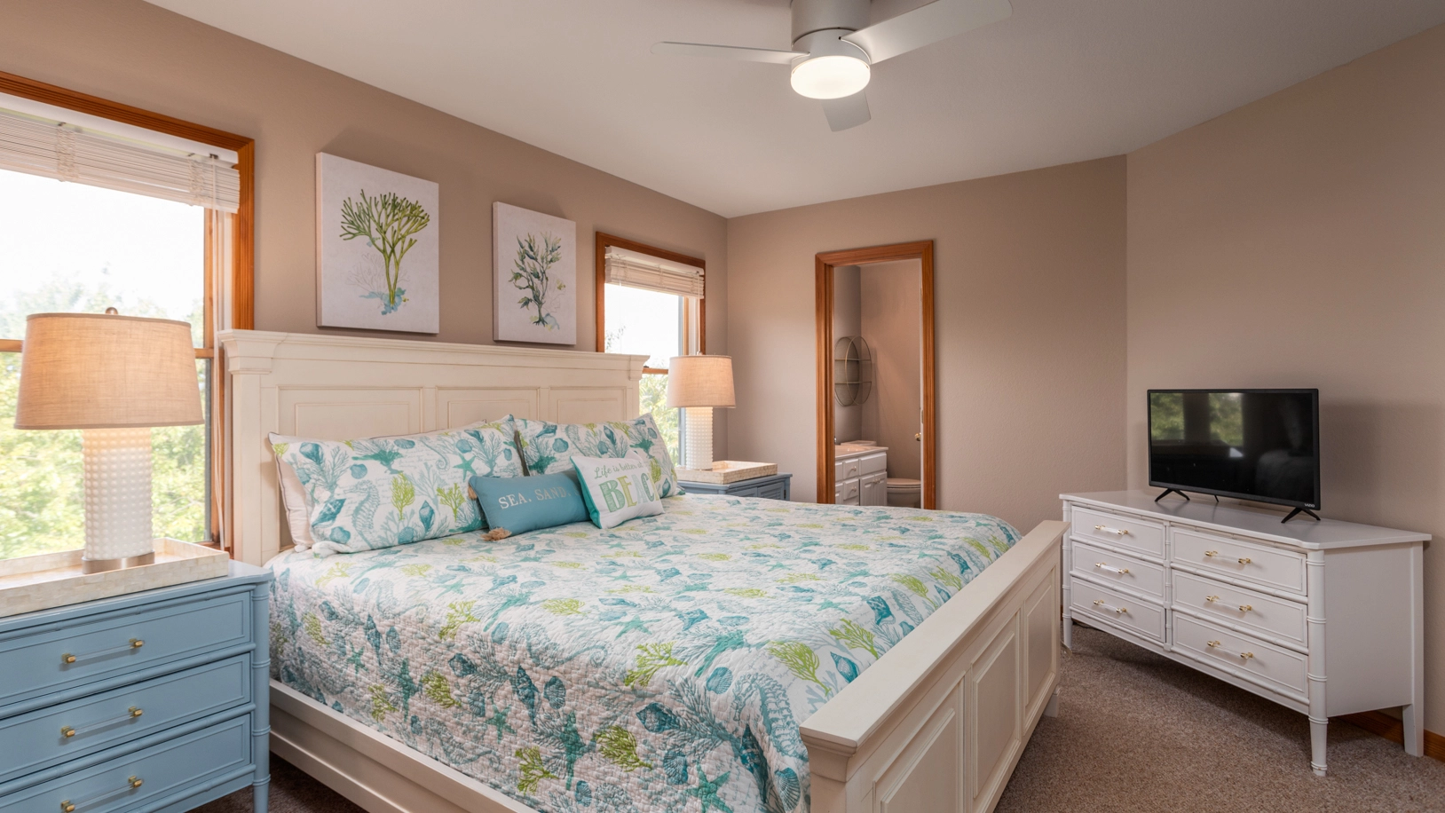 "All of the amenities, layout, fully stocked kitchen, ice maker, water, proximity to the beach and town. We really liked the text features and reminders. Keyless entry was great. Very clean and tidy. Fantastic updates."