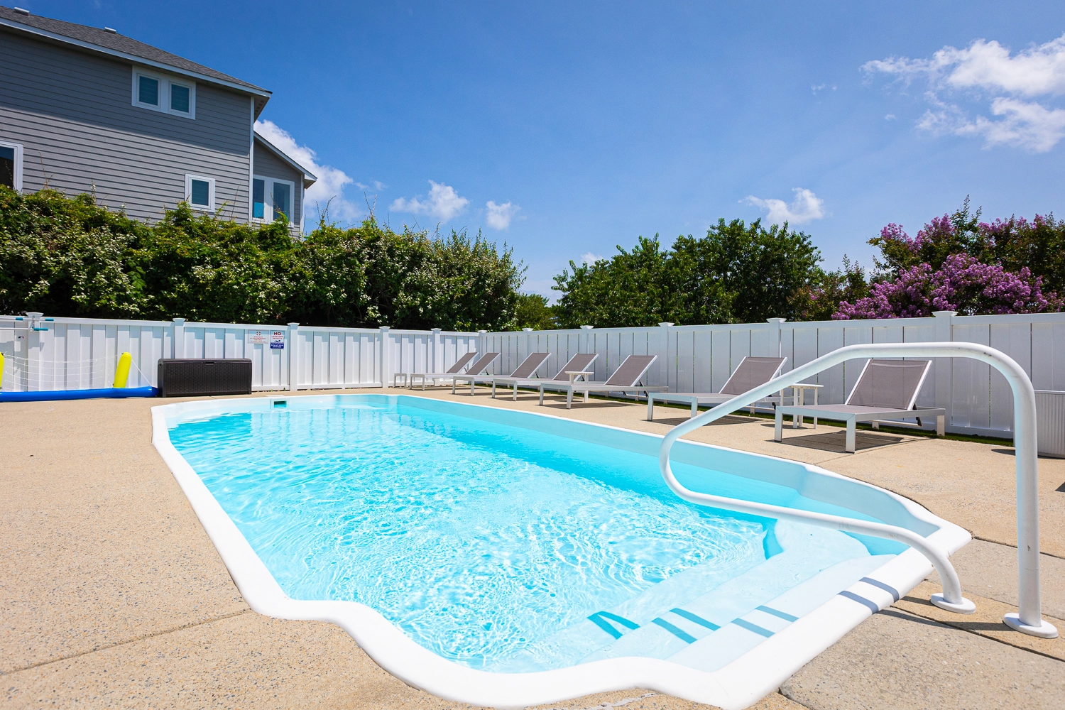 "Spacious, lots of space in kitchen and dining areas. Pool is full sun and stays warm."