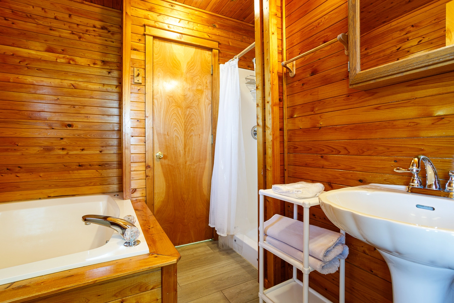Queen, Semi-private bath, Standing shower, Whirlpool tub