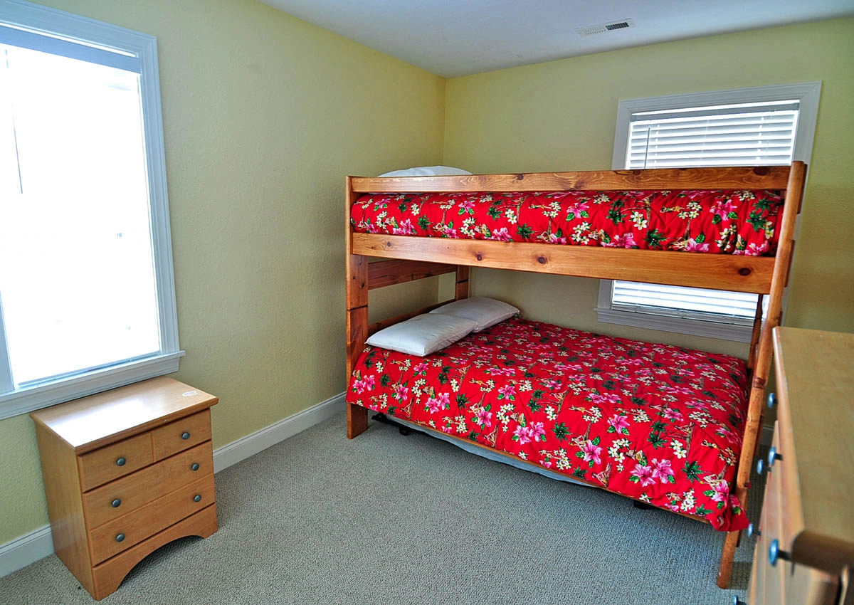 "Upon arrival the house was very clean and cool. There was plenty of space for 10 adults and 2 small children with room to spare. Each couple had their own bedroom and bathroom plus there were common bathrooms to share. The open floor plan on the main floor (3rd floor) made it convenient to always be together. The large dining room table was great for playing games. Two dishwashers allowed us to keep the kitchen clean at all times. Was thankful there was a second refrigerator as well! The location of the home was perfect too; close enough to the beach and the shops to walk but we enjoyed riding our bikes too. Would highly recommend driving to see the sand dunes at Jockeys Ridge and take some kites along! Also a drive on the beach in Corolla was a fun experience but we didn't see any wild horses. Coffee shops and Duck doughnuts were close by. Wee Winks had all the groceries we needed and was so close we could walk or ride bike. This was a wonderful vacation and hope to do it again some time!"
