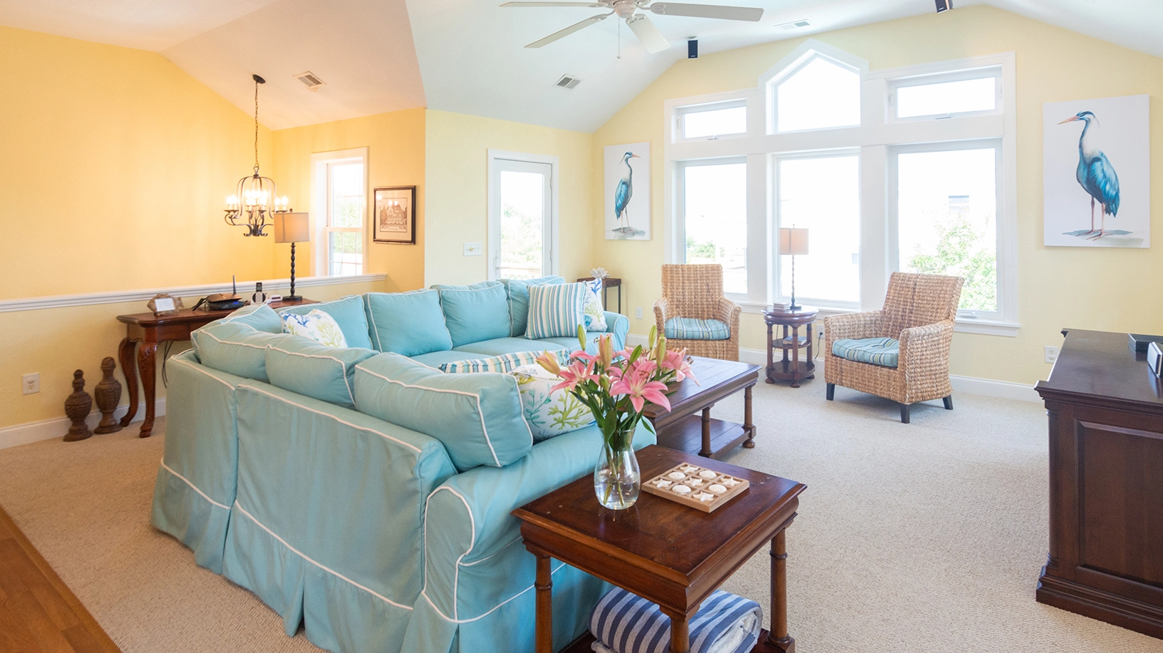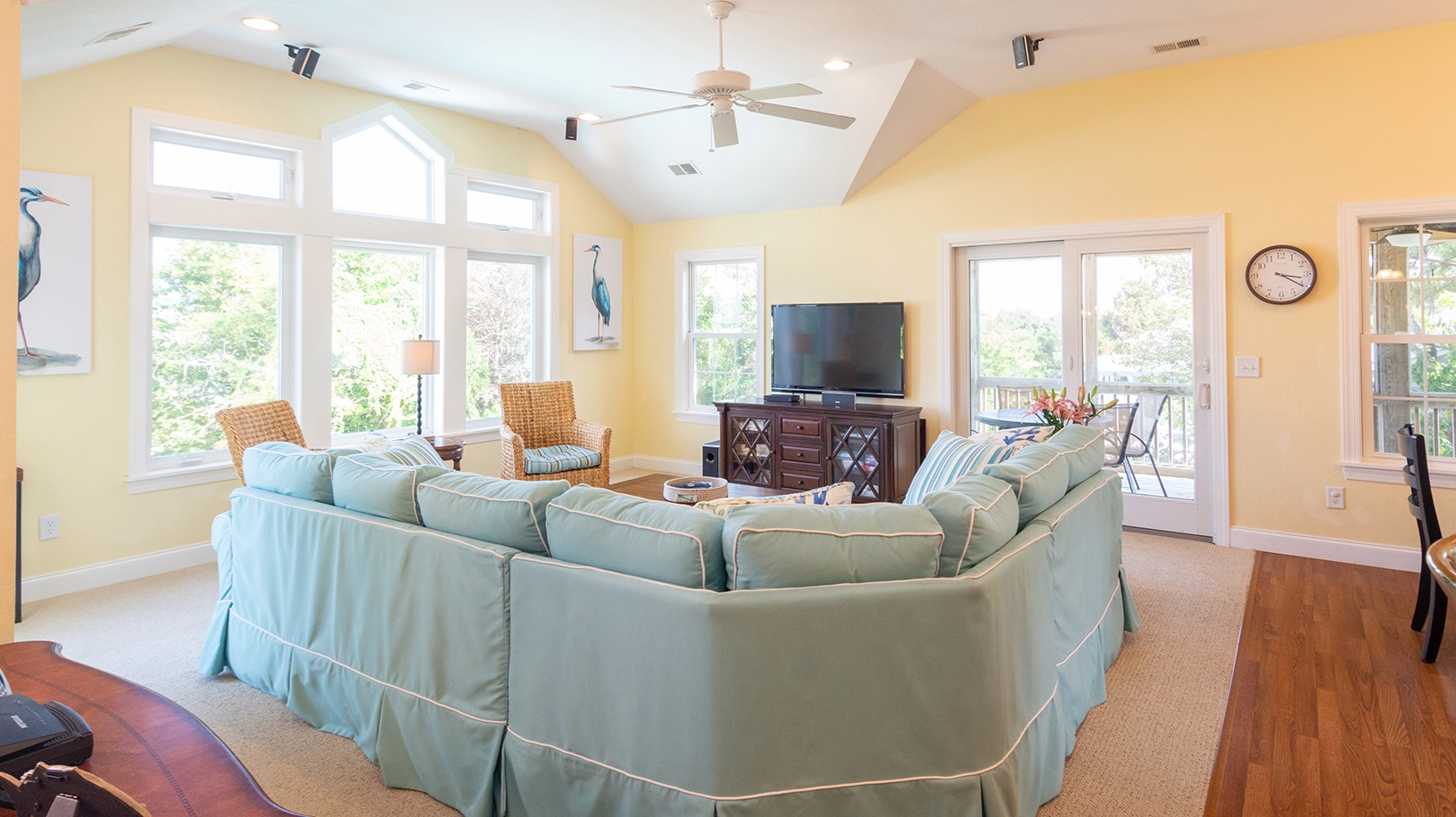 "It is a lovely home, well suited to our family with lots of kids. We enjoyed having the porch with tables for the kids to eat, so the adults could enjoy the dining table. We loved having two dishwashers and a well equipped kitchen. The downstairs room provided a good getaway for those looking for a quiet place. Small problems were quickly taking care of by the Twiddy staff. We plan to be back next year."