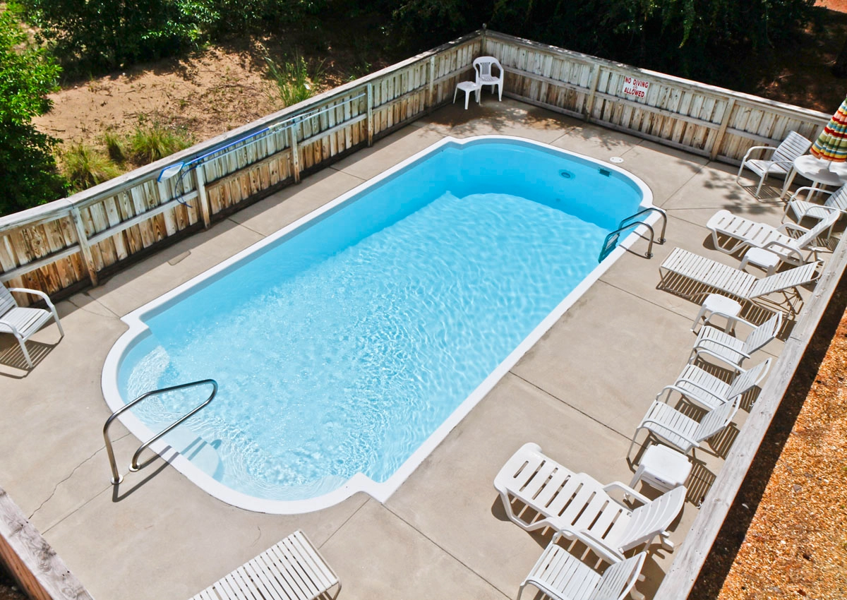 "This house is very spacious and well laid out. We had four families, thirteen people, in our group and the second floor had plenty of space for our two families of four with room to spare. The other five people stayed on the upper floor. We didn’t even need the sleep sofa on the lower level. The main living areas easily accommodated us all. Everyone enjoyed the private pool very much and the owners have a nice supply of pool toys available. The kitchen was well-equipped, too. The walk to the beach is a bit far for young kids, but it’s doable with strollers or a wagon and there’s also a bike rack. Parking is very limited by the beach access. It’s a short walk to shops and the boardwalk by the sound, in the other direction, which was very convenient. We had a great time and were very pleased with the Dancing Duck and highly recommend it!"