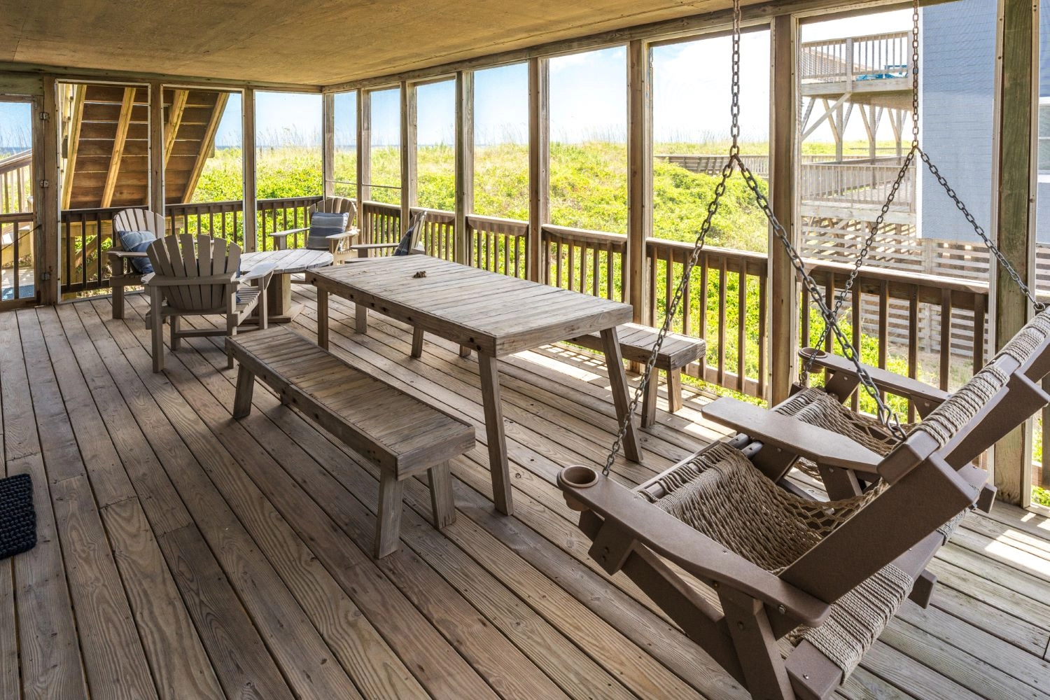 "The view of the beach grasses, the birds that hovered over the dune and the constantly changing sky were the best part of my stay. The house itself provided many places to sit and watch the ocean both in sun and shade. It was a chilly November week with strong winds but the house was well insulated and comfortable. The upper deck facing South provided a sun drenched sheltered sitting area and the swing on the screened in porch was a soothing place for morning coffee. ."