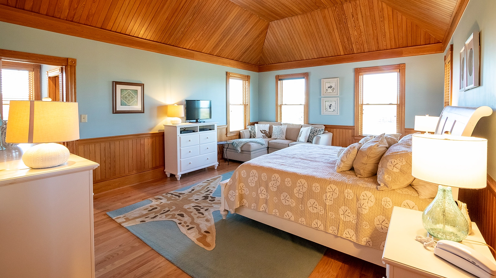 King, Shared bath with room 2, Standing shower, Sitting area and access to screened porch