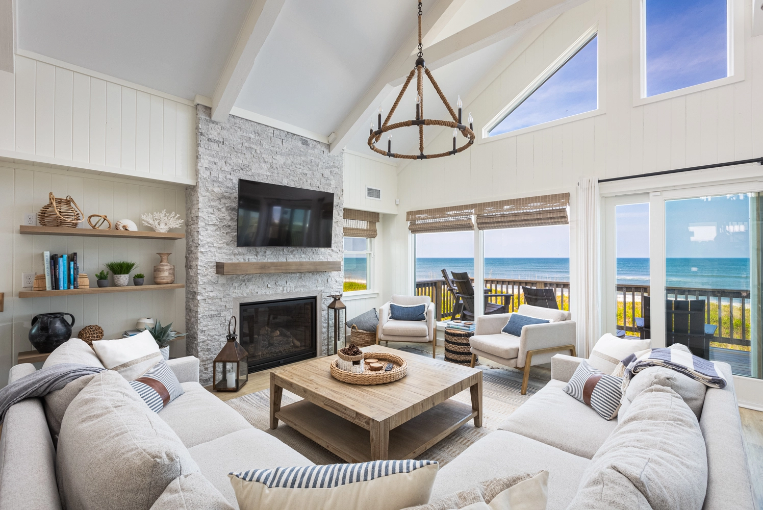 "Very well furnished and decorated. Clean, updated appliances. Beds extremely comfortable. Plenty of places to stretch out like the front and back decks. The screened in porch was perfect for puzzles and the loft area provided an extra sneak away for reading. And it’s oceanfront!"