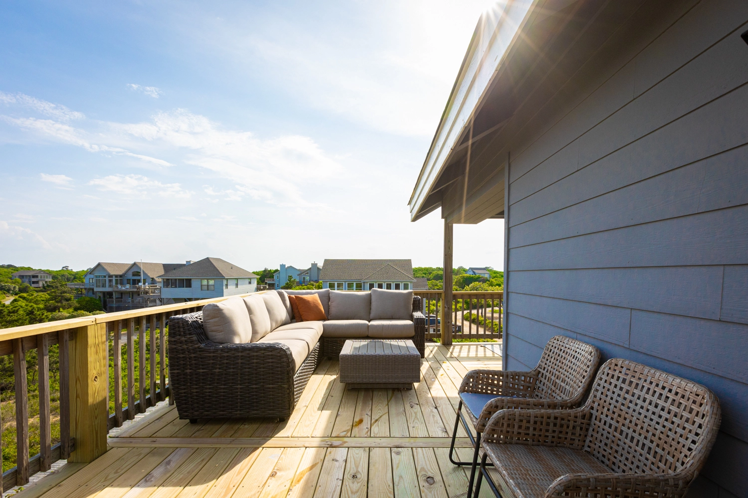 "Our family loved this house. The kitchen was wonderful and very well equipped with cooking utensils and pots and pans. The outside porches with plenty of comfortable seating provided lots of dining options each night. The beds were very comfortable and we loved the location. We saw dolphins every day from the front deck or when we were on the beach!"