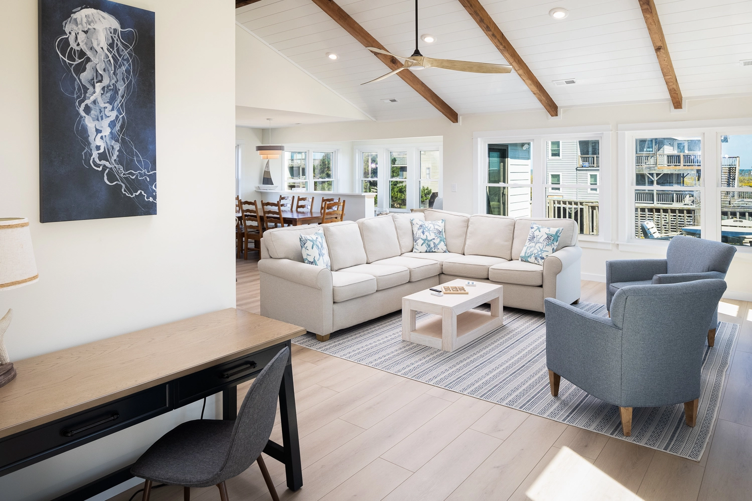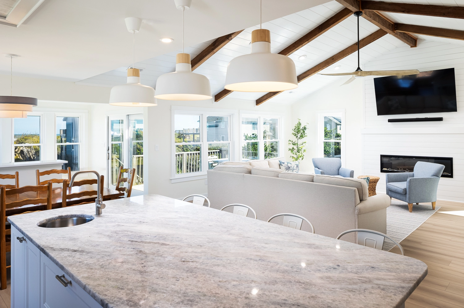 "The updated decor and design made us feel like we were in an episode of HGTV! We loved the whole house water system, fully stocked kitchen, updated bathrooms and definitely the distance to the beach. The cul de sac was great for the kids to ride bikes. The exterior was clean. Decks were great too!"
