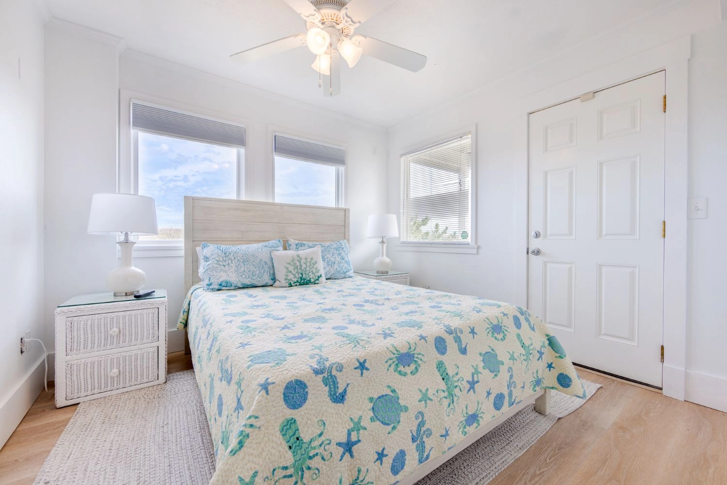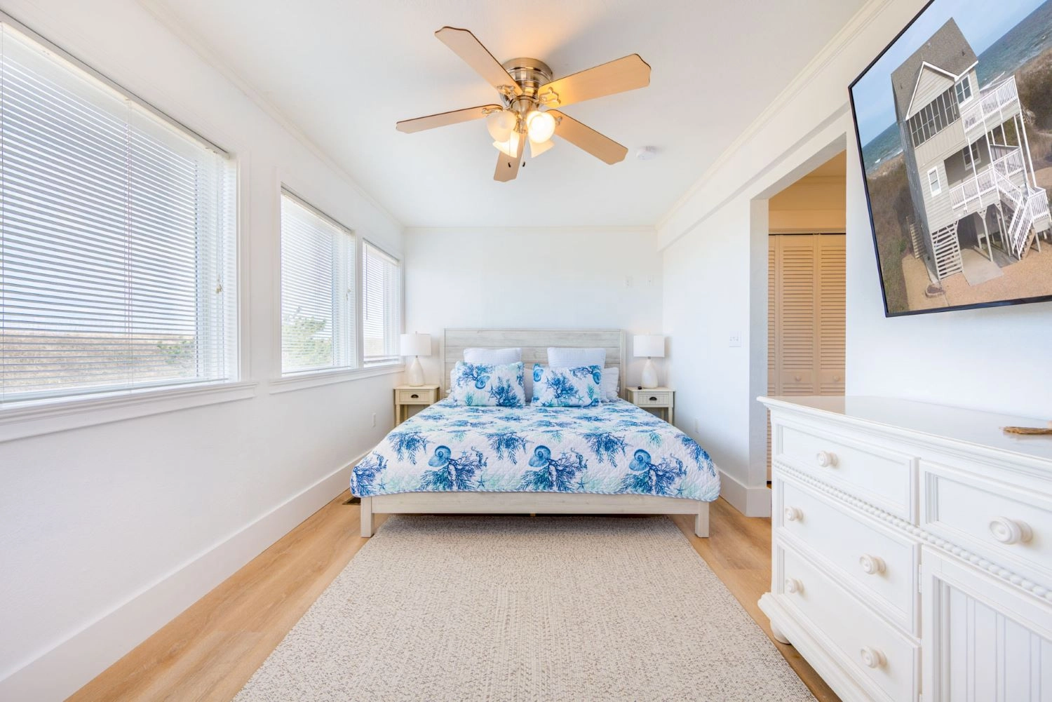 "Location to the beach, multiple patios, modern decor, multiple bathrooms for each room, extra pillows and blankets."
