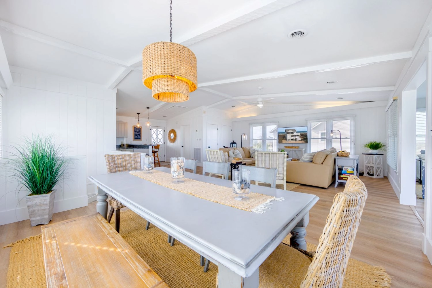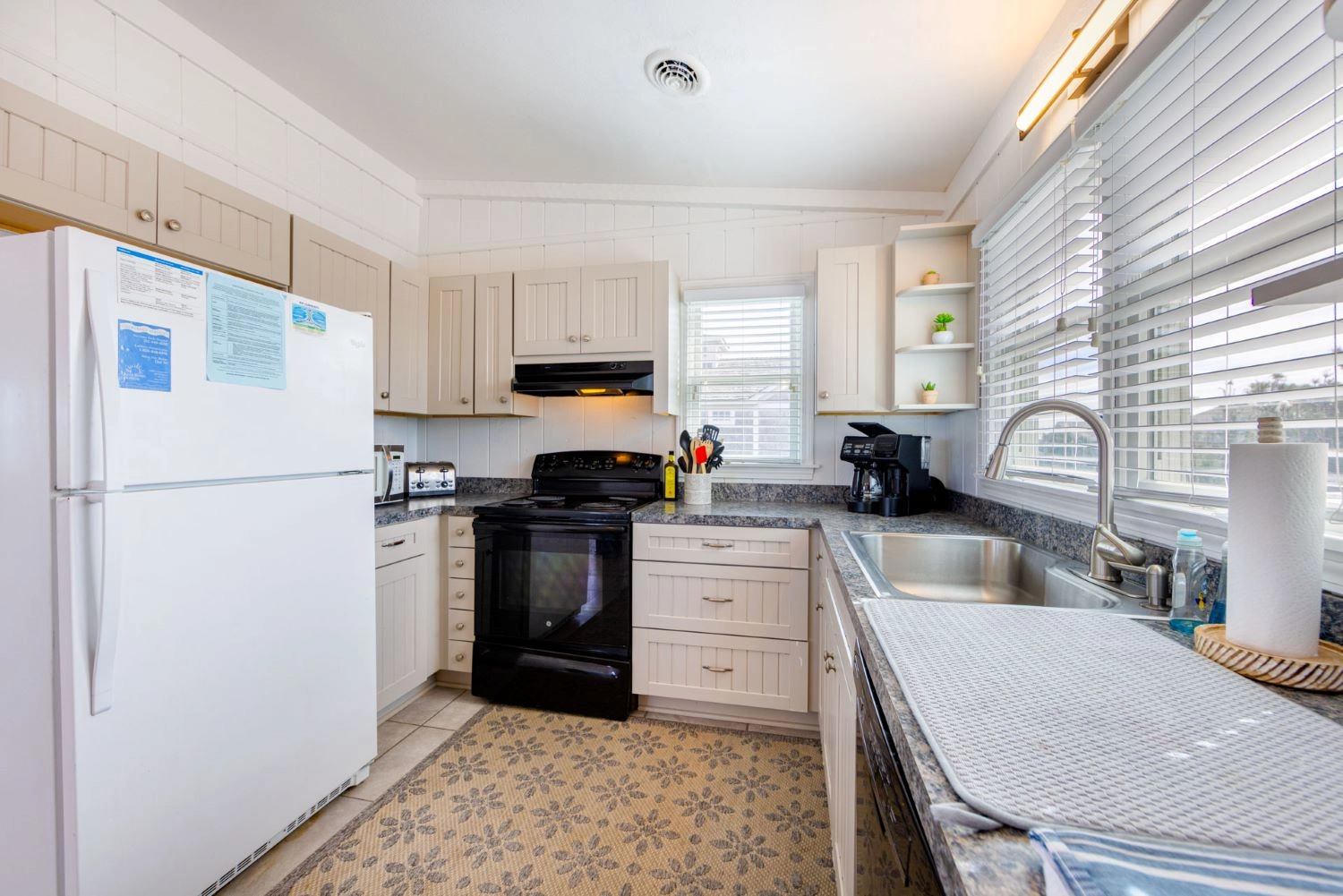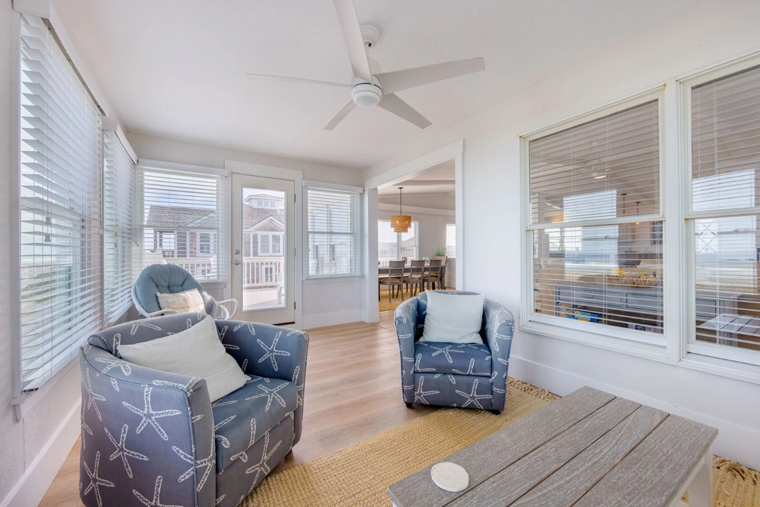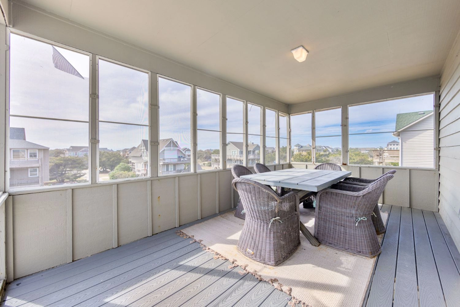 "This was our first trip to Outer Banks. We’ve rented several vacation homes over the years so we have a pretty good feel for what to expect. Our first impression of the Harrison wasn’t great, but wasn’t horrible either. It felt a bit worn with spider webs and bugs inside the windows. However, everything (besides bugs and patios) felt clean. By the first evening we were so comfortable, it felt like we were staying in a family member’s home. As someone else said, it was worn enough we were not afraid to “live” in it. The location was awesome, but views from the home were not what we expected. The windows were so dirty we could barely see the ocean and the midges were so bad on the deck we only used it once. The view was the biggest reason I went with oceanfront, so I was disappointed. The screened porch was not cleaned and someone previously had left a screen off. It was easily fixed, but the bugs had done their damage. We know this is not all the rental company’s fault, but I think next time we will stay more interior and not pay extra for the deck and view. We never used any of it. They told us to keep the blinds closed to help with the bugs, but nothing we did mattered. They were swarming like crazy! The beds were comfortable, there were tons of outlets and the kitchen was well stocked with dishes and utensils (probably the best we’ve seen in a rental house). We couldn’t find any salt in the local stores and had to resolve to collecting small packages when we went out to eat. Every home we’ve stayed in had at least salt and pepper, but I was not really surprised this house didn’t (they warned us). I liked that Twiddy kept in touch with us via text message. I liked the little welcome package. The laundry was good and we loved being able to walk to the beach every morning and night. Overall I give it 4 out of 5. If they could clean the bugs better and fix the minor cosmetic issues (drywall, etc) I would give them a 5. Since we didn’t see a lot of bugs around the other places we visited, it definitely felt like more could be done. I would pay more in cleaning fees to get the view better!"