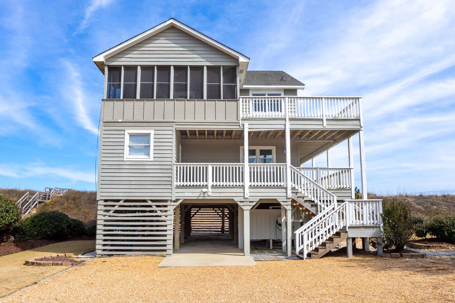"Close to the beach! Kitchen well stocked with essentials. Upper level was nice and comfortable for family gatherings and deck view was great. Liked the outdoor shower!"