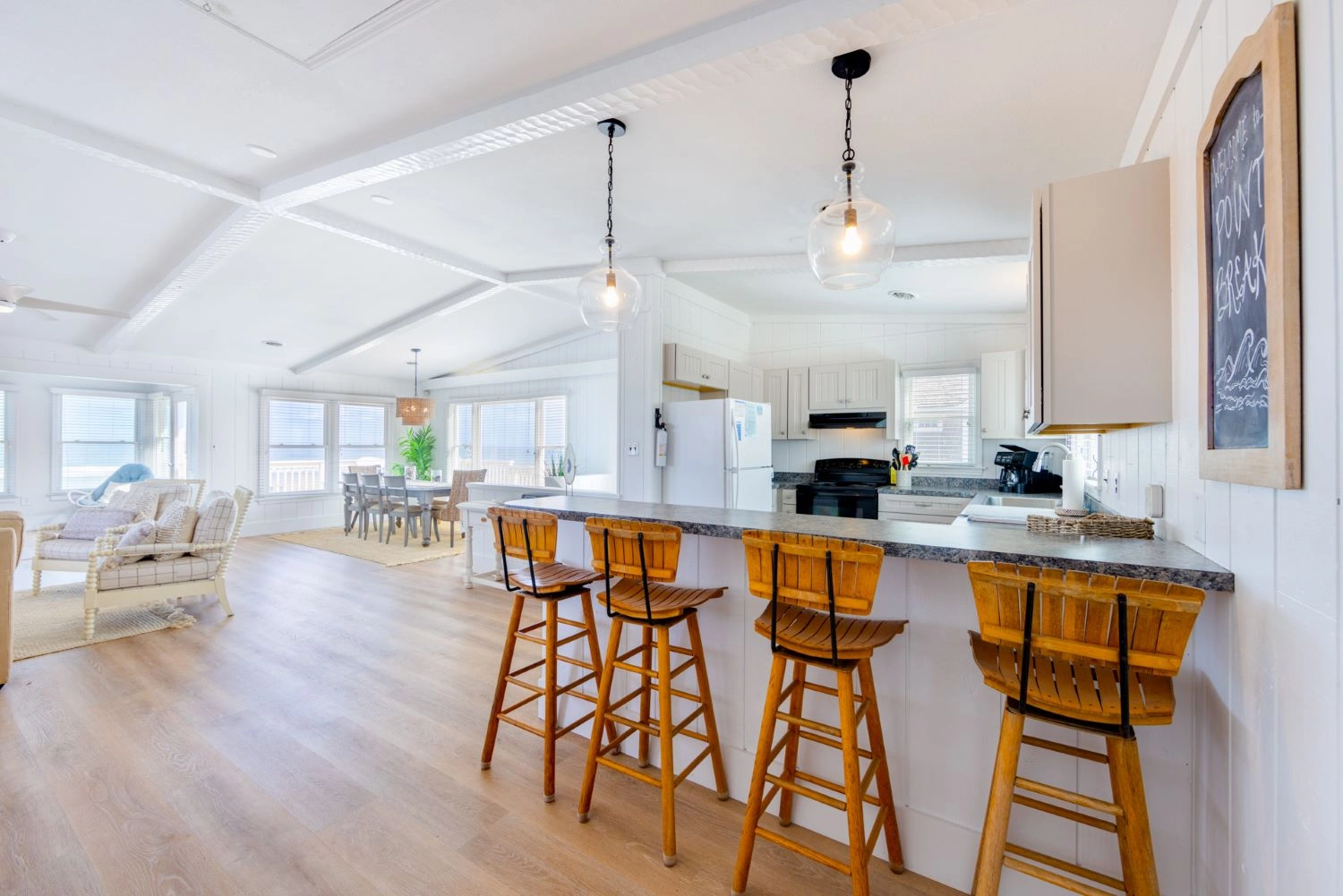 "Home was comfortable and in a nice, oceanfront location. Kitchen was well-stocked with all we needed (re: utensils, glasses, plates, pots, pans, etc.)."