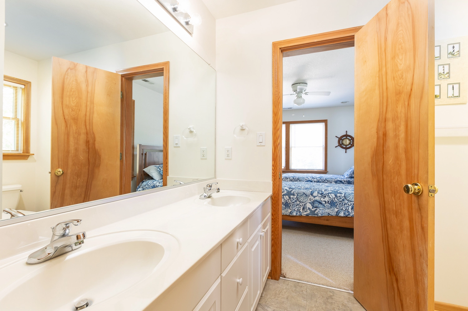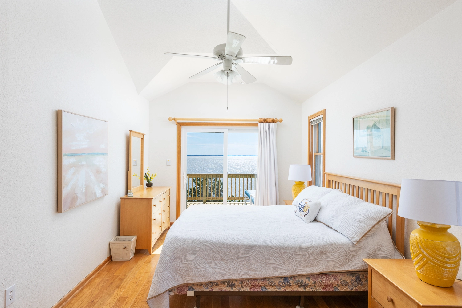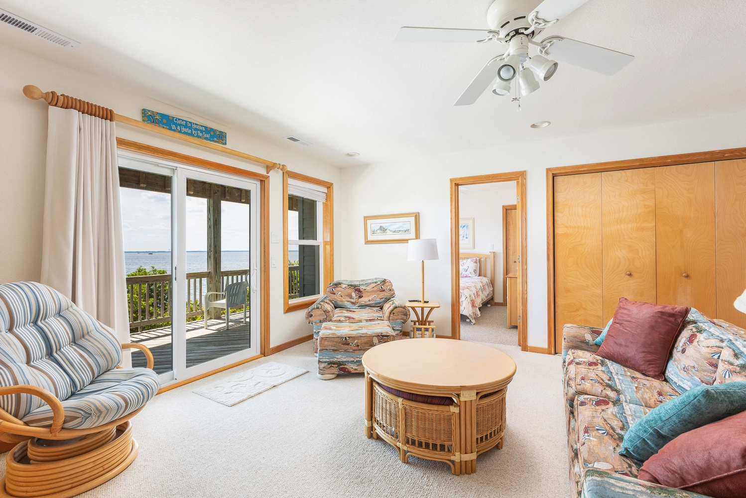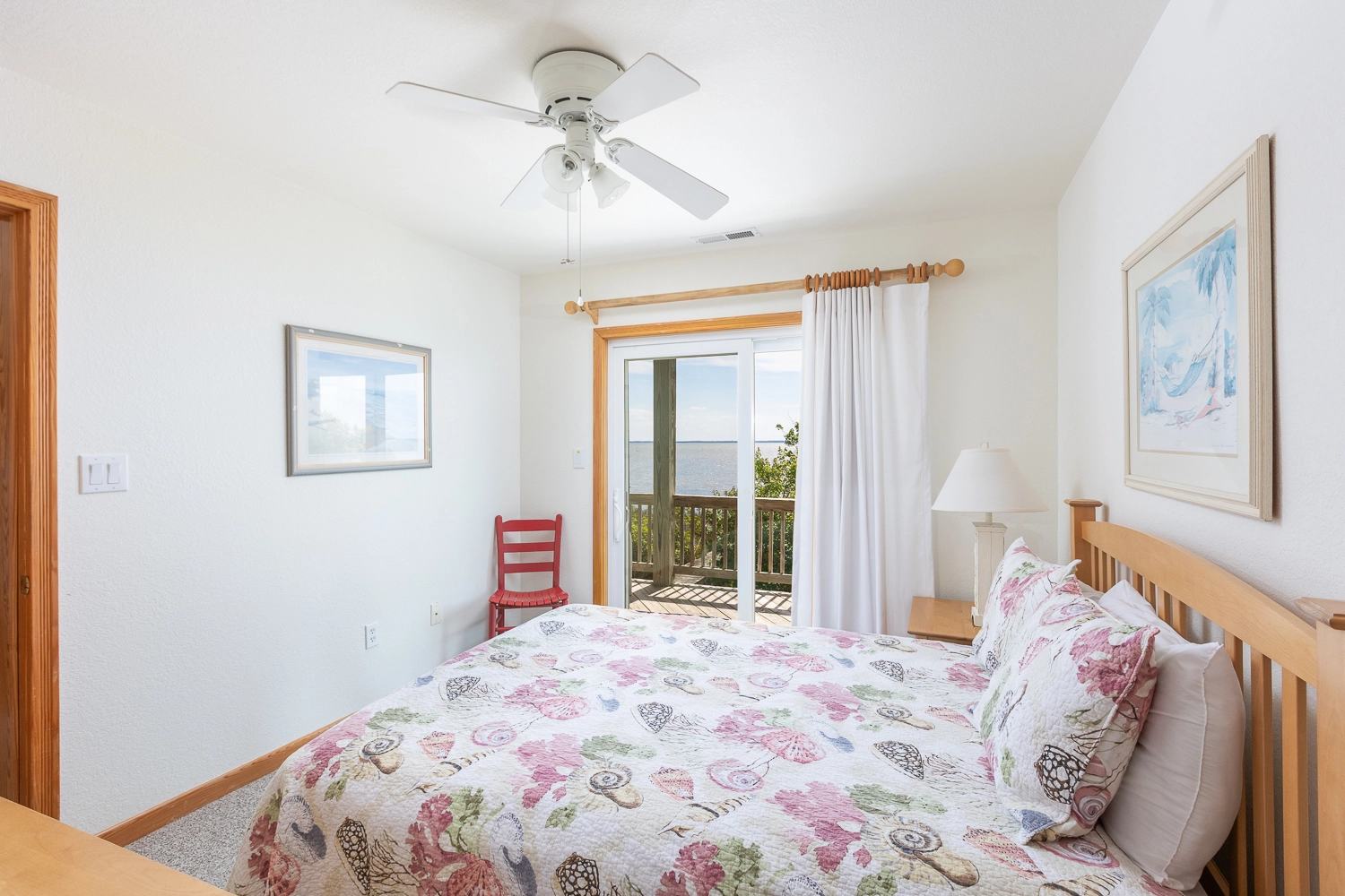 "The layout of the home was just right for my family. My wife and I (Grandma & Grandpa) used the top floor bedroom and bath, while my daughter, son-in-law and 3 children used the second floor 3 bedrooms and baths. They especially appreciated the large common room there. Great location near Duck, where we enjoy walking the boardwalk. Totally loved sitting on the deck overlooking the sound. And only a 7 or 8 minute walk to the ocean. We really enjoyed our week there! Thank you!"