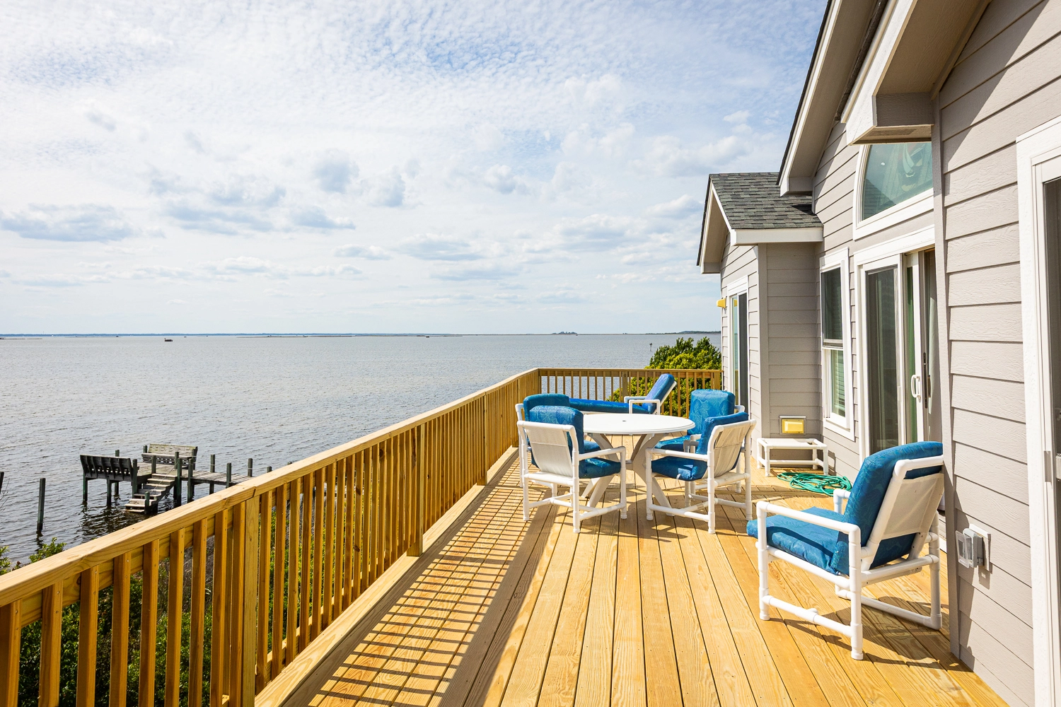 "We loved the magnificent views, the great privacy, the closeness to Duck shopping, the private dock, the “just right” size of the home."