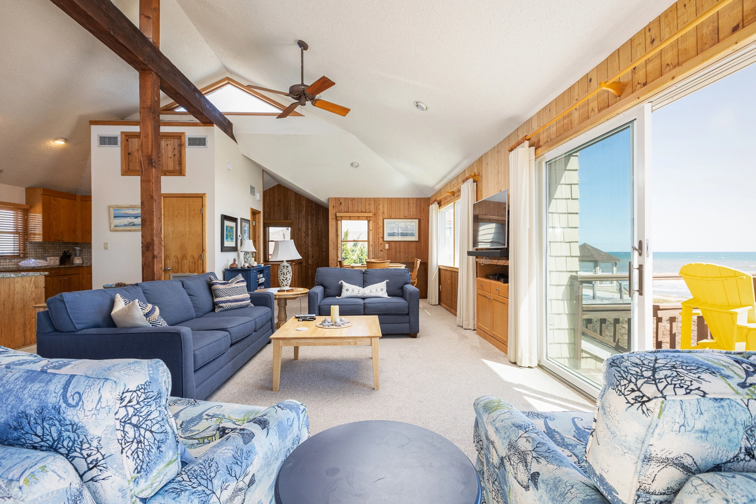 "A visit anytime of the year will provide a beautiful view of the waves and shore either from the deck or the large picture window. The house was perfect for our smaller family group this year."