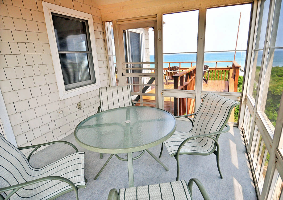 "It's oceanfront and has a screen porch on the side so you don't usually get wind and rain."