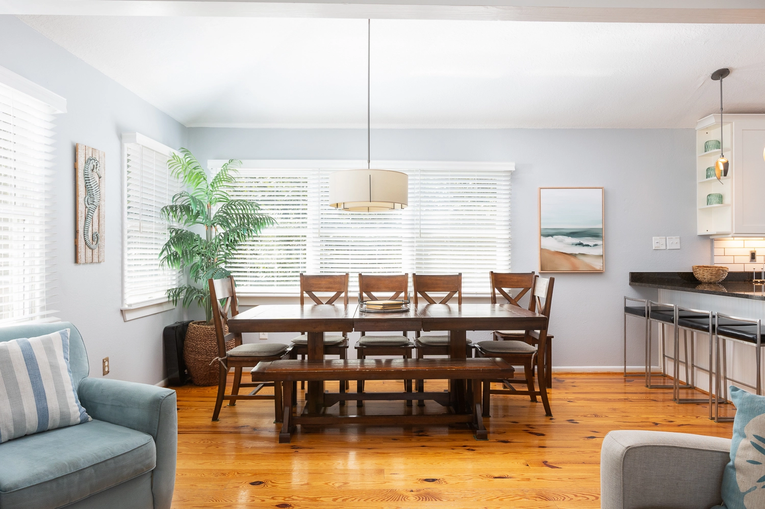 "We love the close proximity to the beach (although we were unclear at first due to the signs that said you needed a wristband). We loved that the house had two refrigerators. We loved that the masters had balconies. We loved the ample parking situation. We loved how close it was to the town of Duck (although too far to walk on a hot July day). We loved the big dining room table."