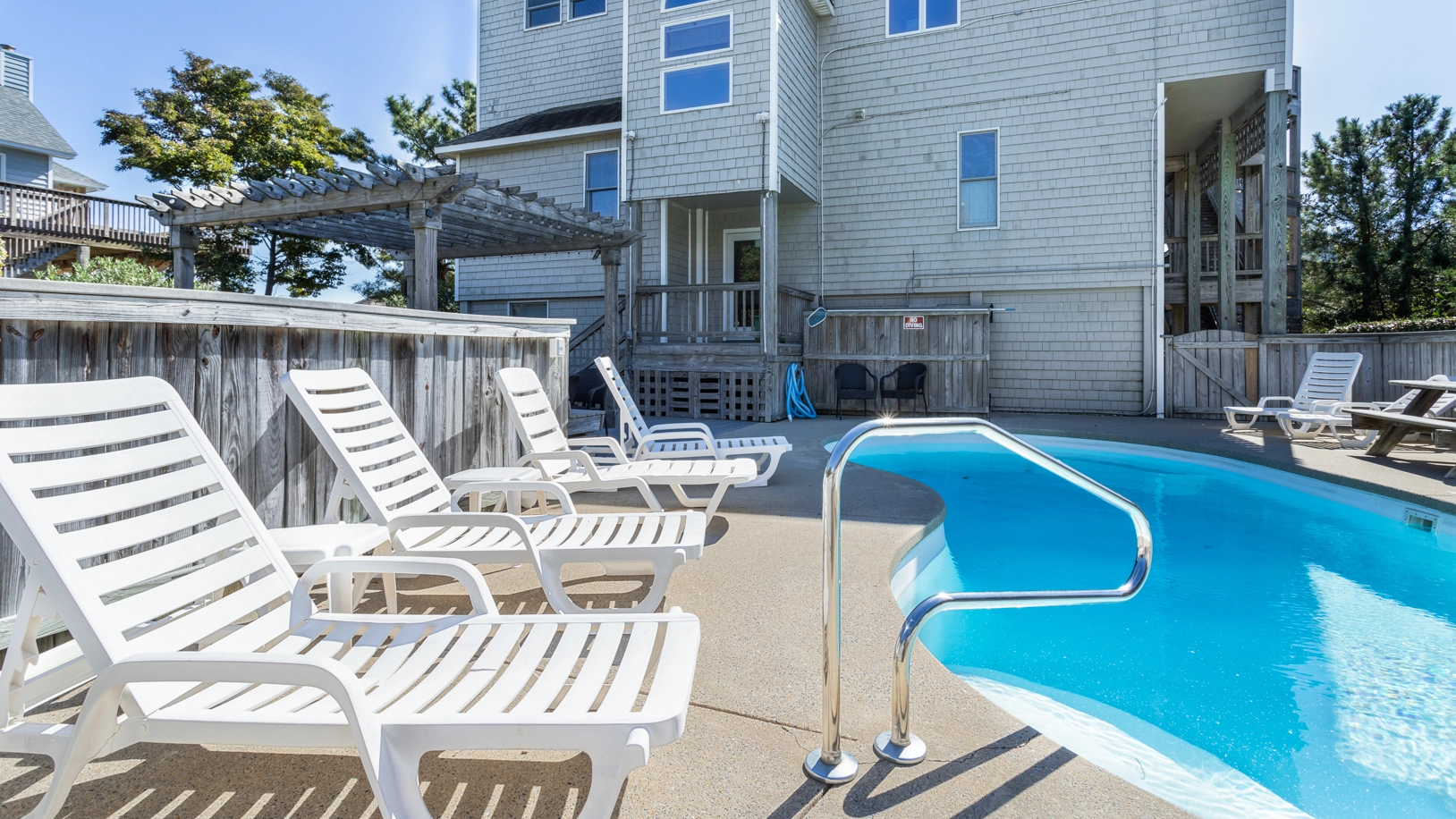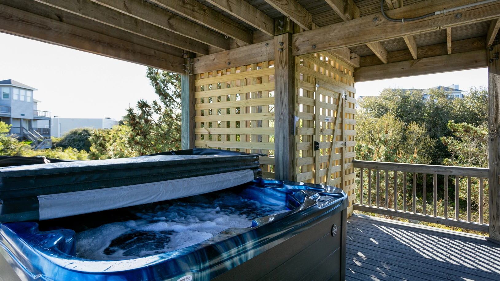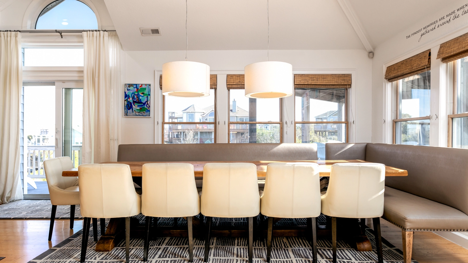 "We were looking for a dog-friendly house with a pool, hot tub, walkable to the beach, and lots of comfortable seating inside and out. This house had it all! Unexpected bonuses included the walkability to shopping and the boardwalk, built in under the counter ice maker, extremely well stocked kitichen to prepare home cooked meals, and a fenced in yard for the fur babies. Sunsets/sunrises were beautiful as we sipped beverages while sitting in the "crows nest" (upper deck). We made so many families memories."