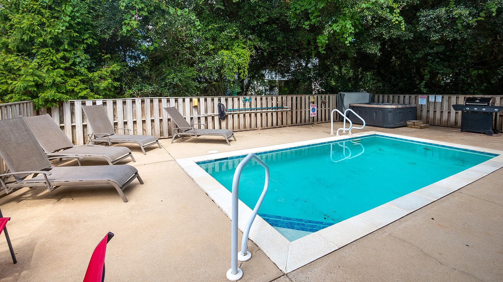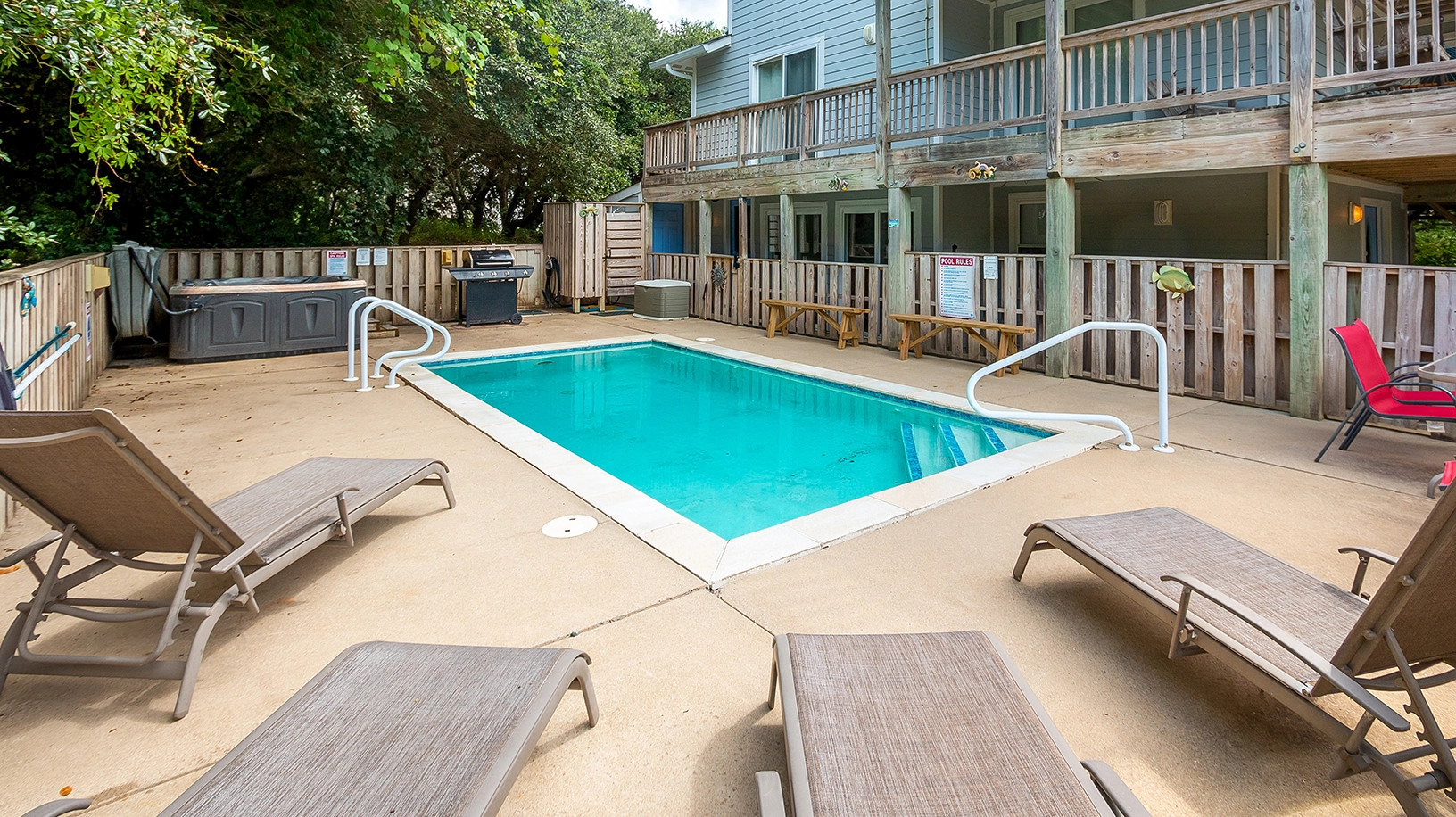 Private Pool, hot tub, multiple TVs, and gas grill.