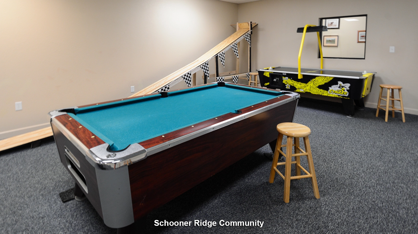 Rec room (QSS) with foosball, arcade game and kitchenette.