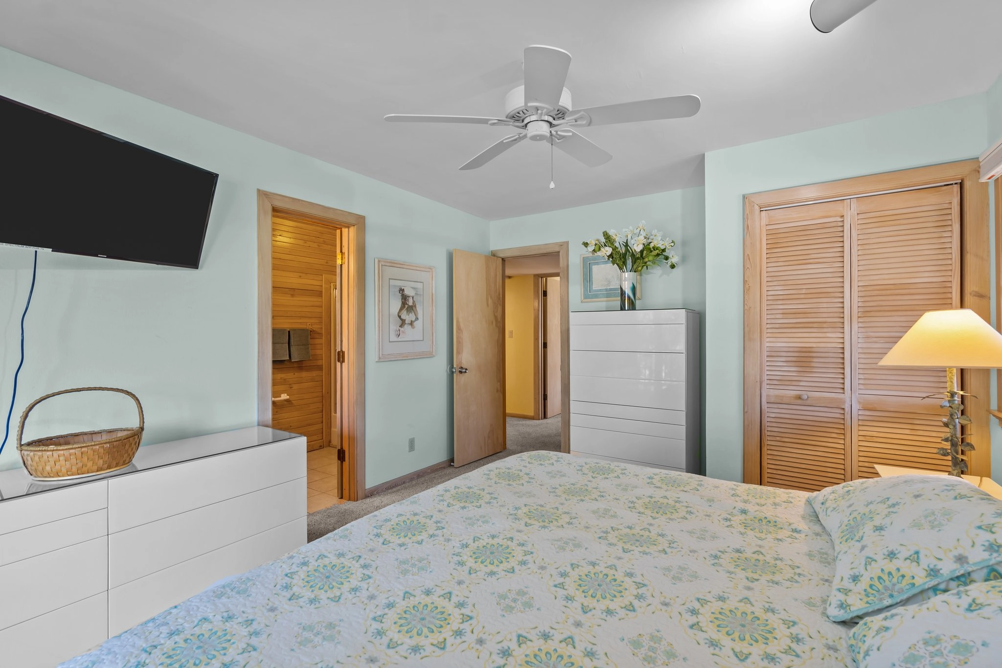 "Nice house, good location. Love Schooner Ridge. A few recommendations...put a ceiling fan in all the bedrooms, as well as one full length mirror. Replace 2nd floor carpet with the new inexpensive vinyl plank flooring (so much easier to keep clean at the beach and with a pet). Living room couch is worn making it difficult for active seniors to get up from. When it's time to do bathroom renovations, 2nd floor hall bathroom needs a total redesign - way too small. The stay was very pleasant as always. Thank you for making it available for rent with 1 pet."